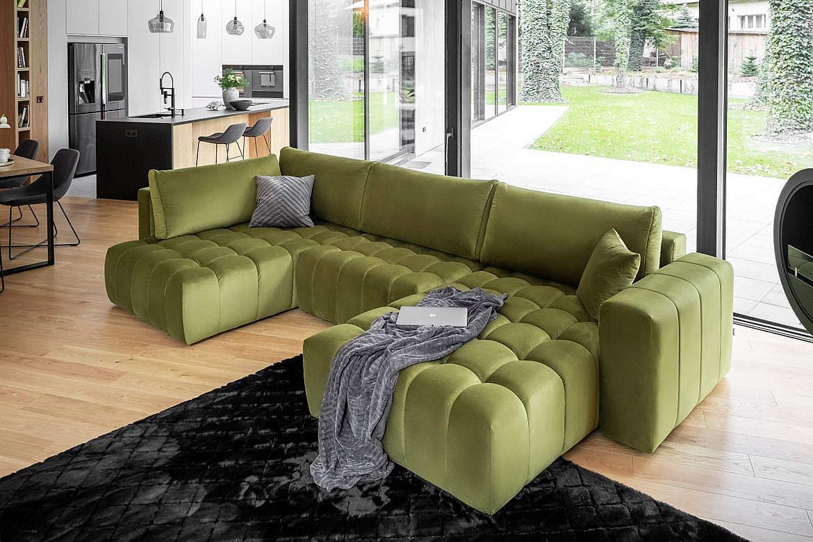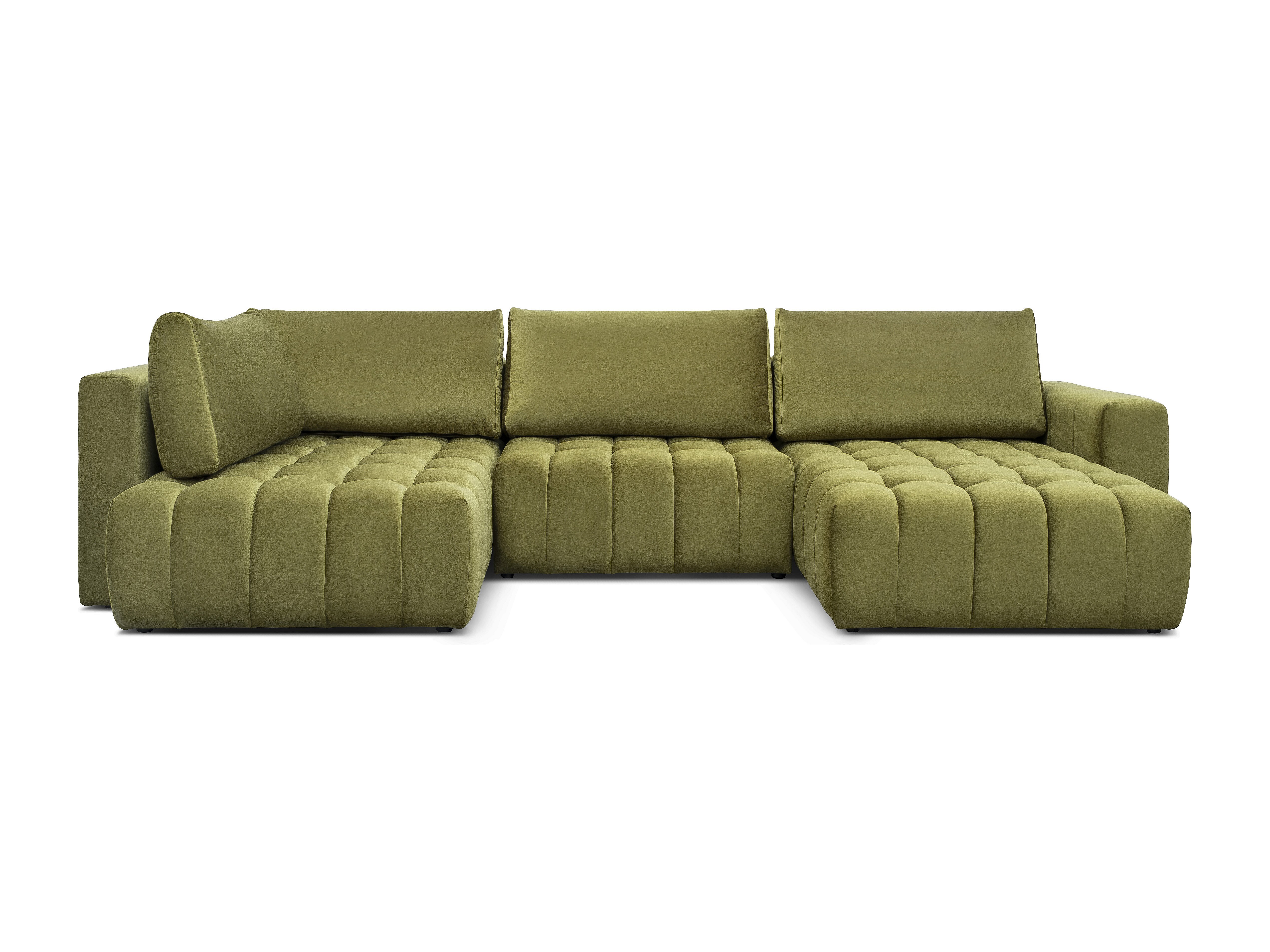 Canapé panoramique convertible design capitonné simili cuir noir méridienne droite Boston 350cm