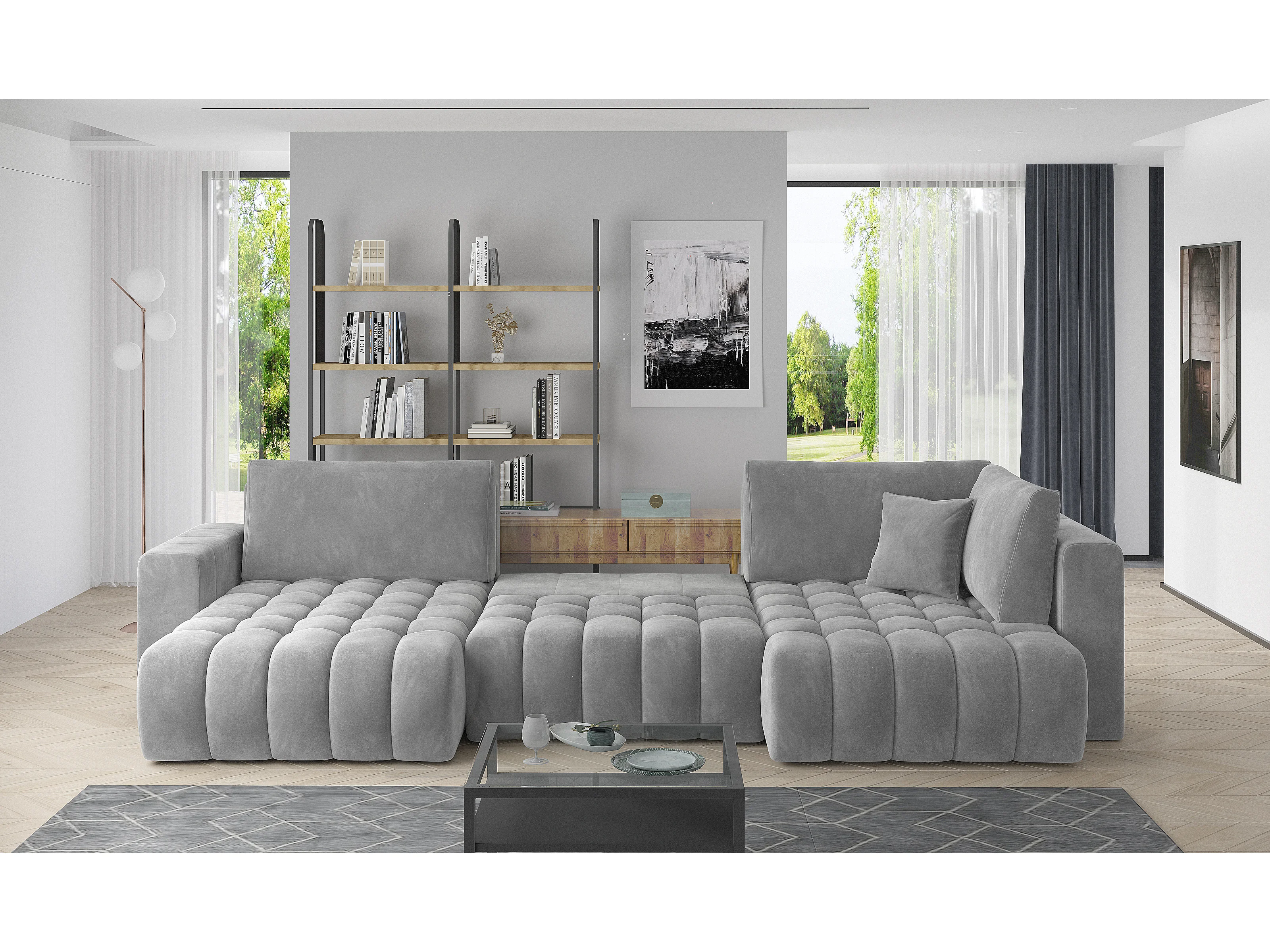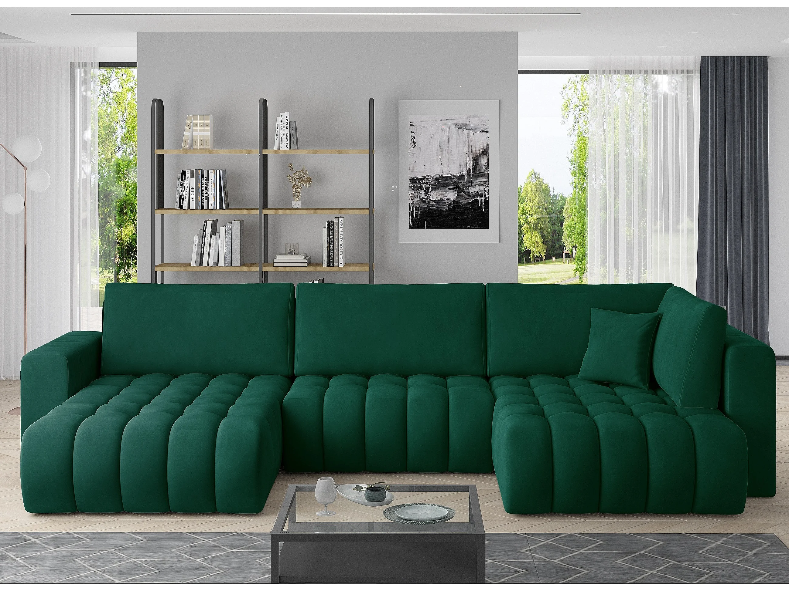 Canapé panoramique convertible design capitonné tissu vert méridienne gauche Boston 350cm