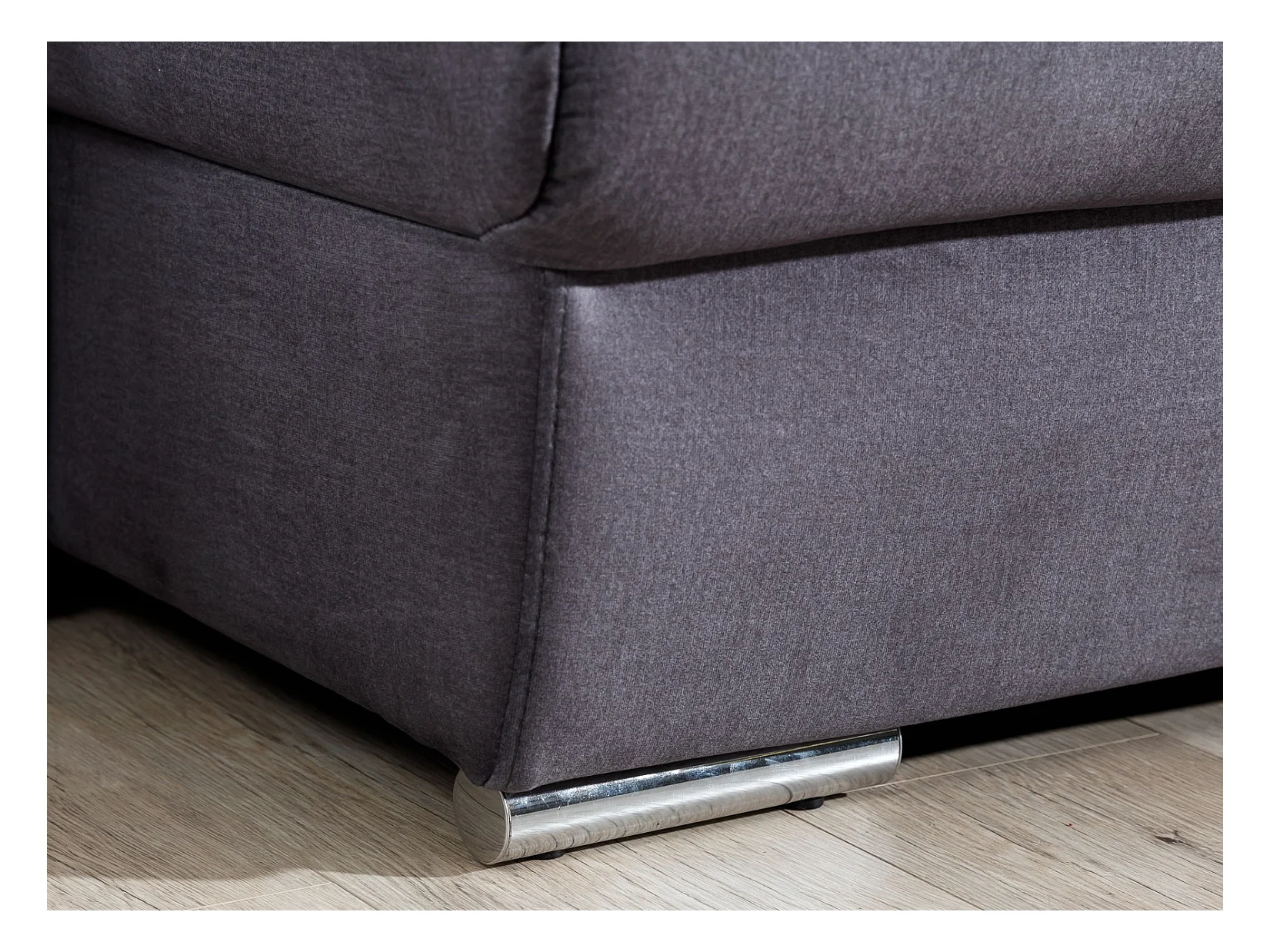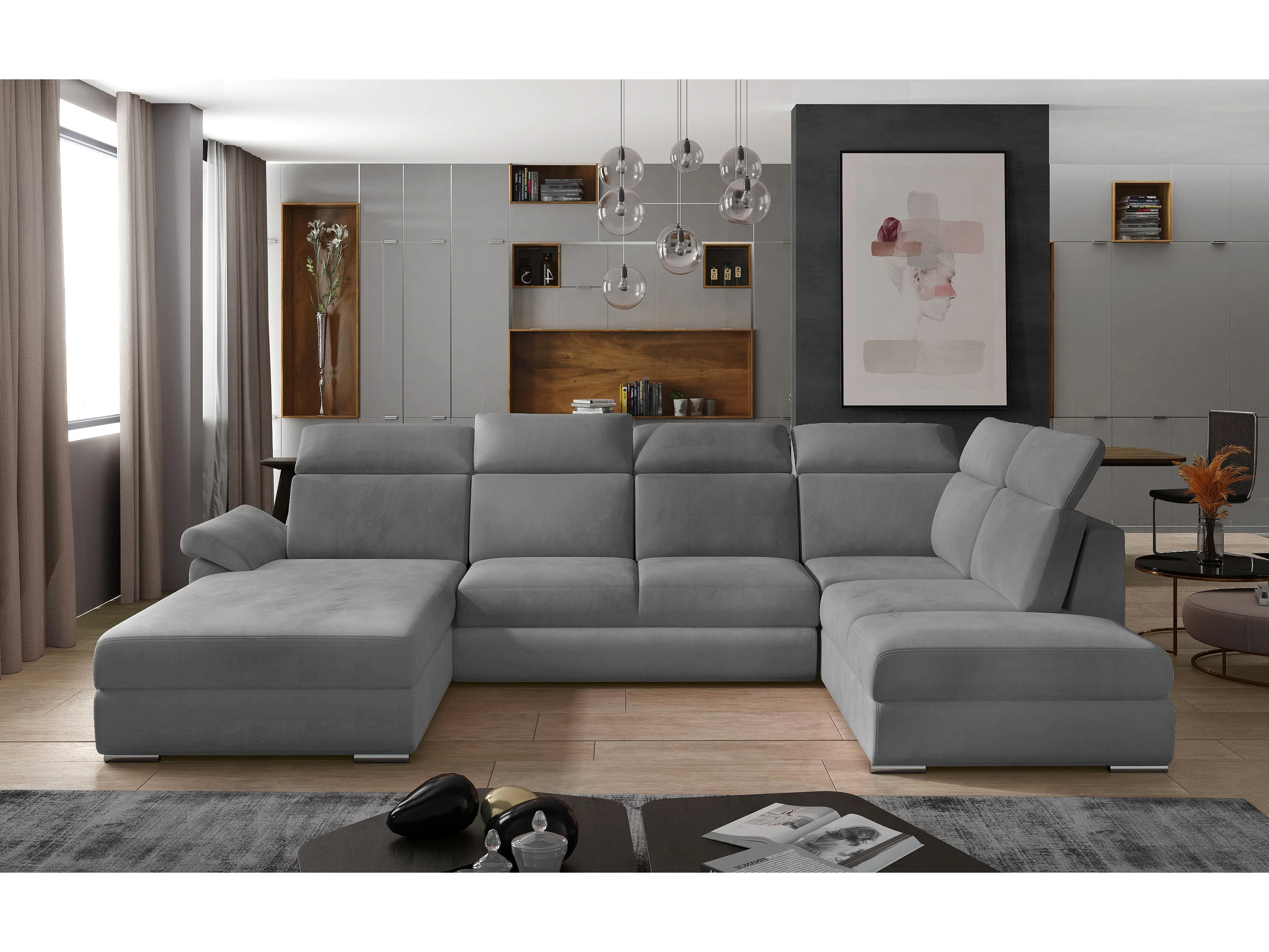 Canapé panoramique convertible LEVANO velours - Rangement et appuie-têtes réglables-Gris-Coffre à gauche