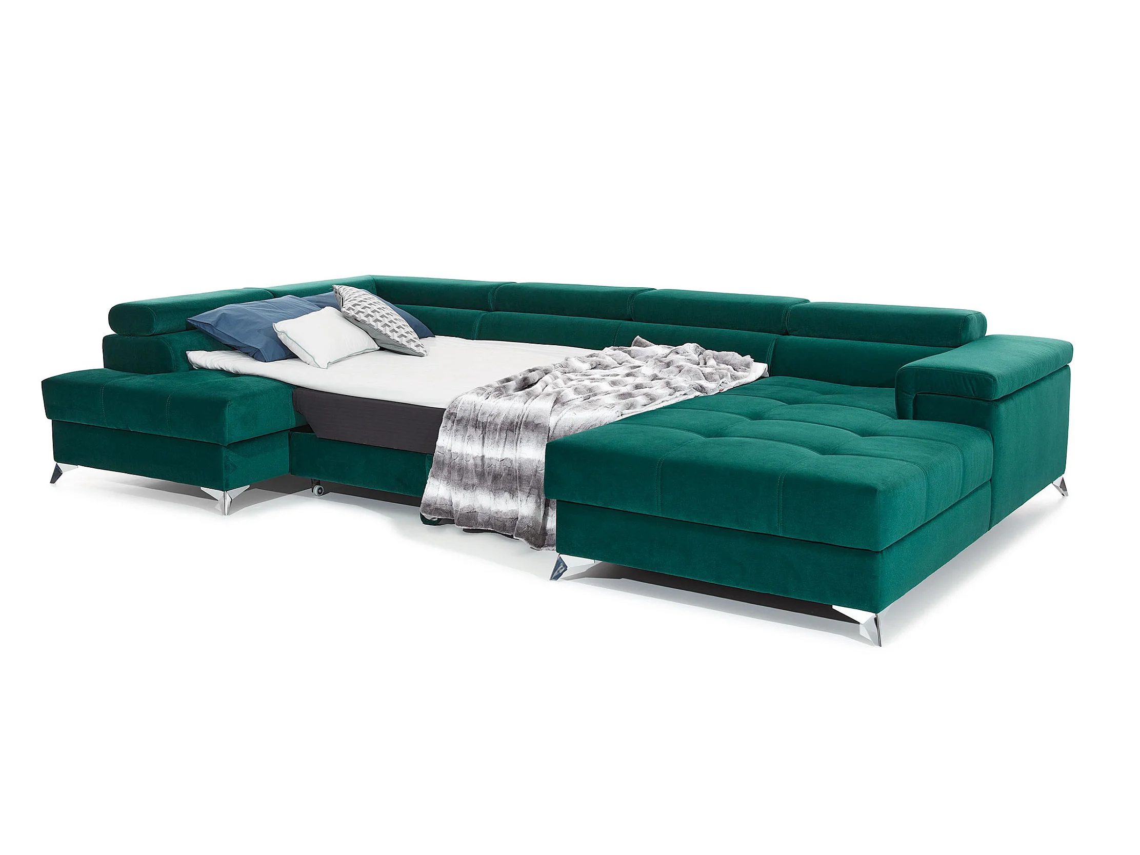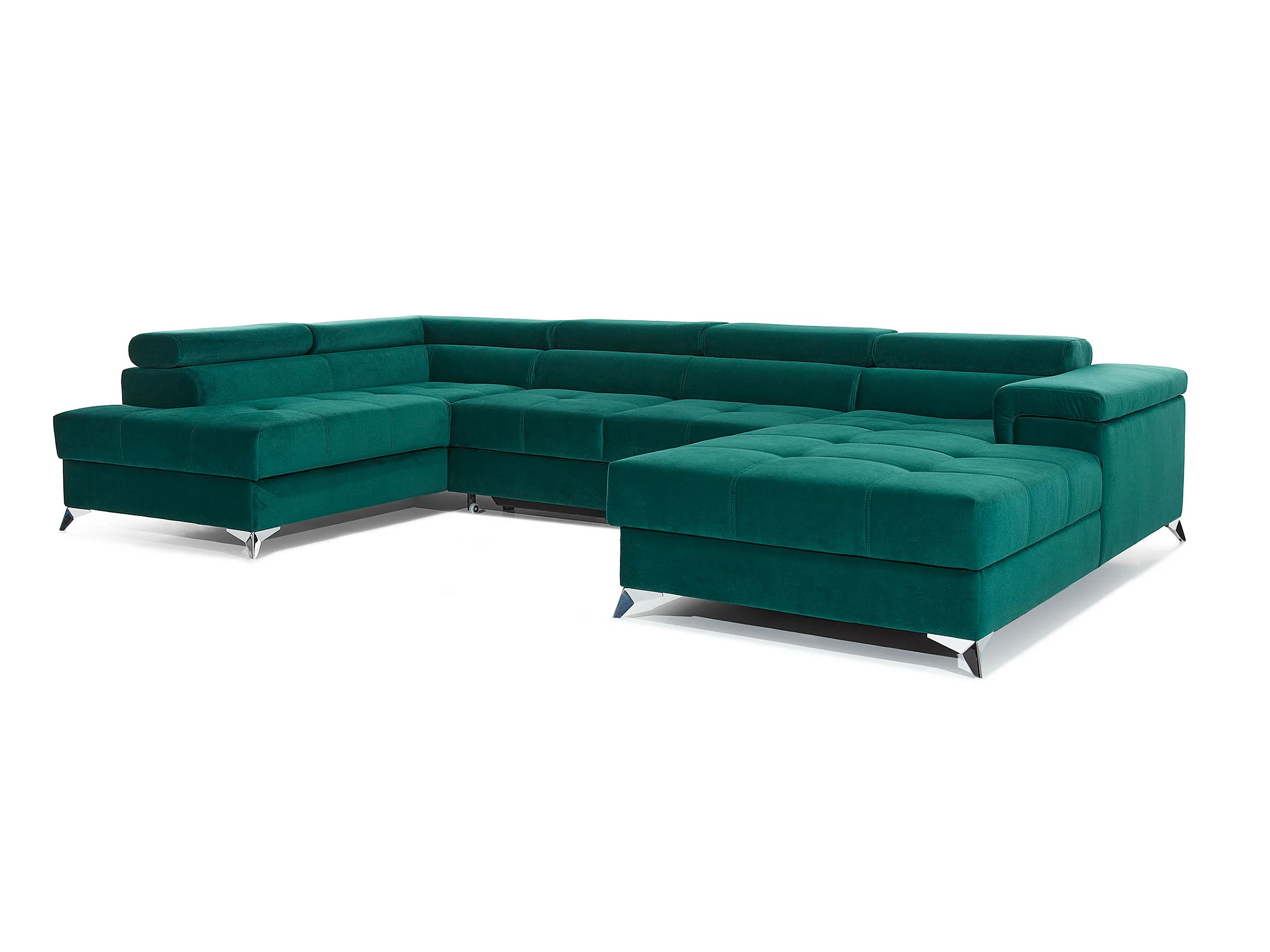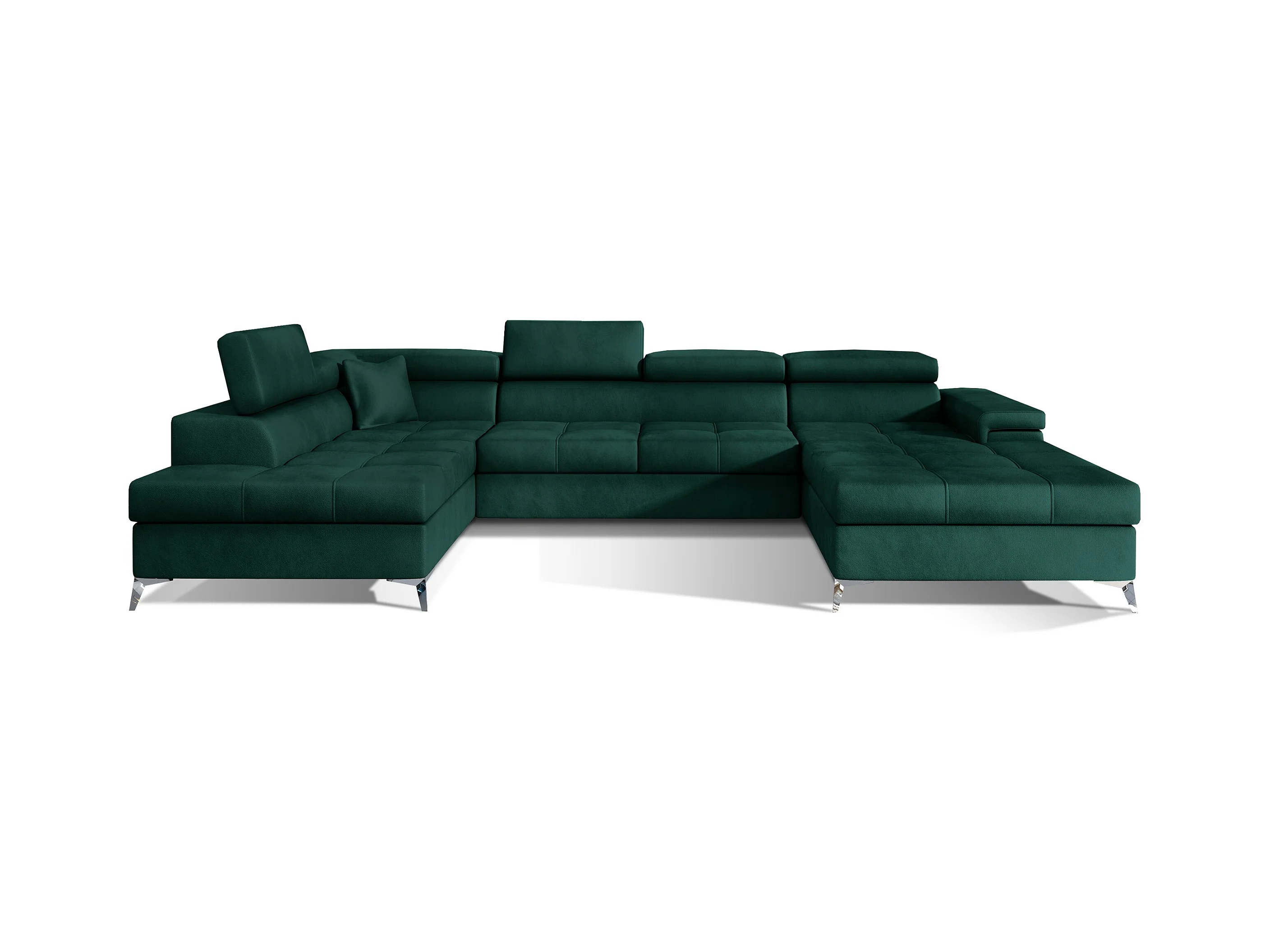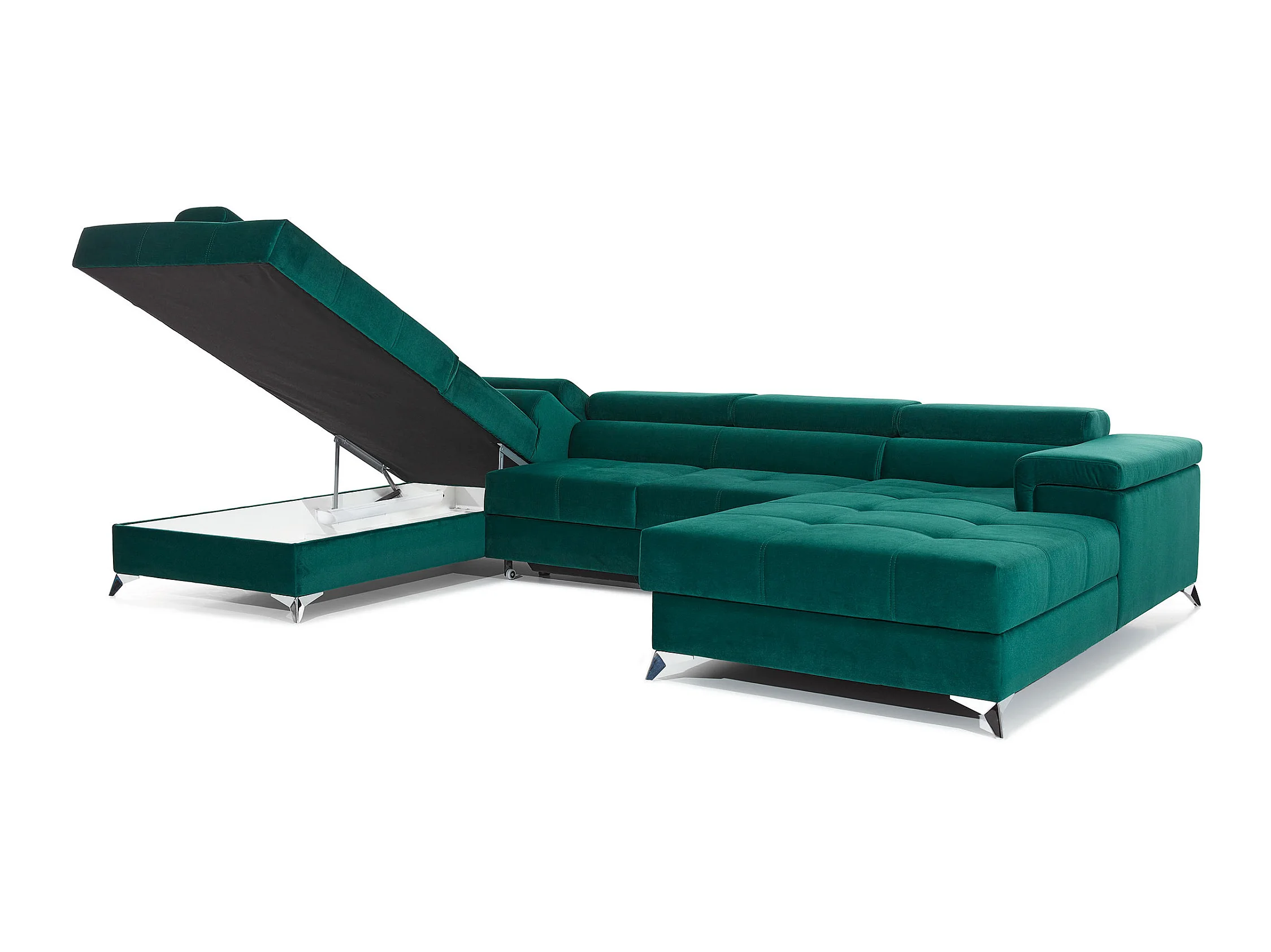 Canapé panoramique velours vert foncé coffre de rangement à gauche Kutty 345cm