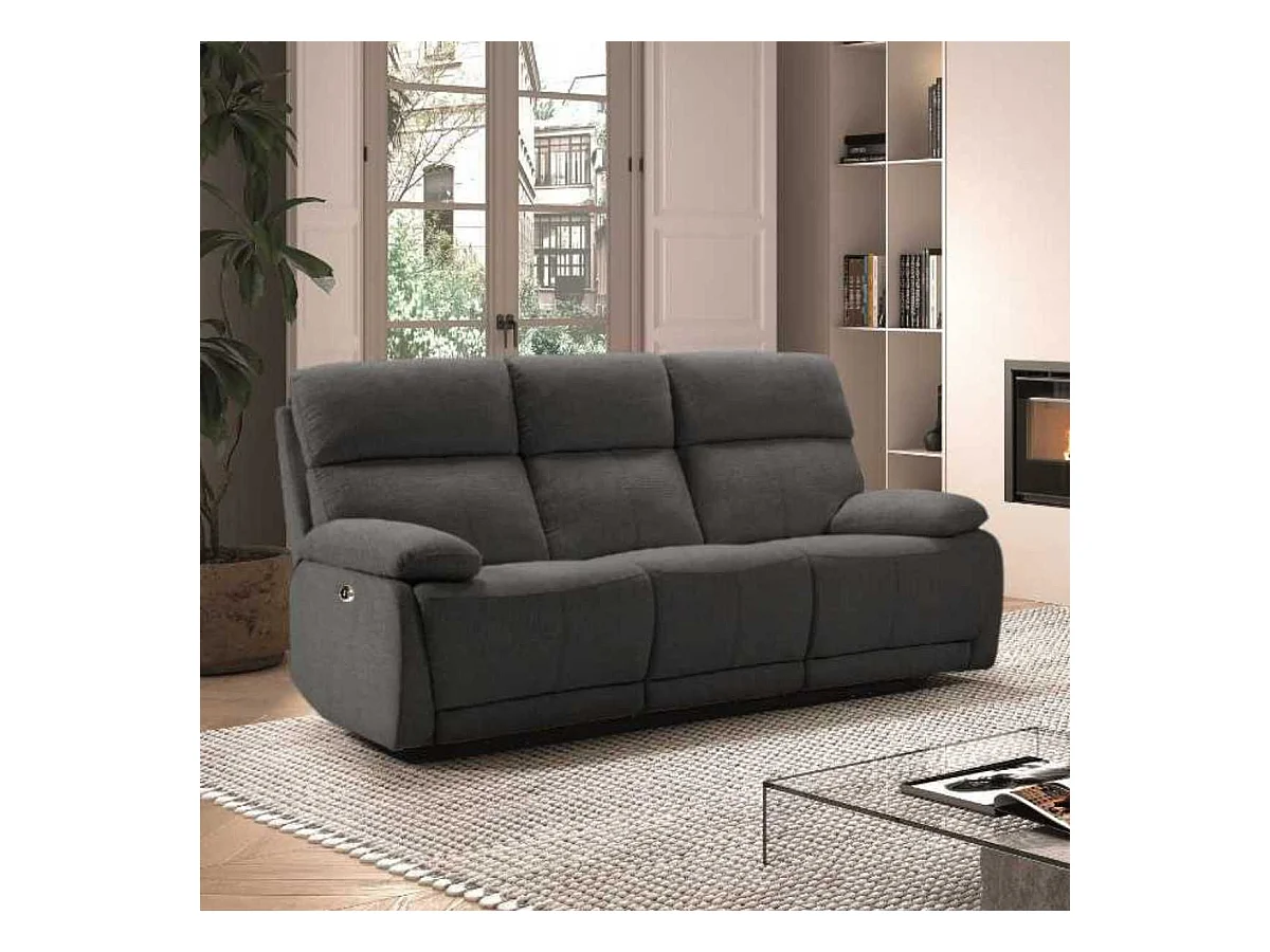 Canapé relax électrique 3 places tissu polyester gris foncé - MIGUEL