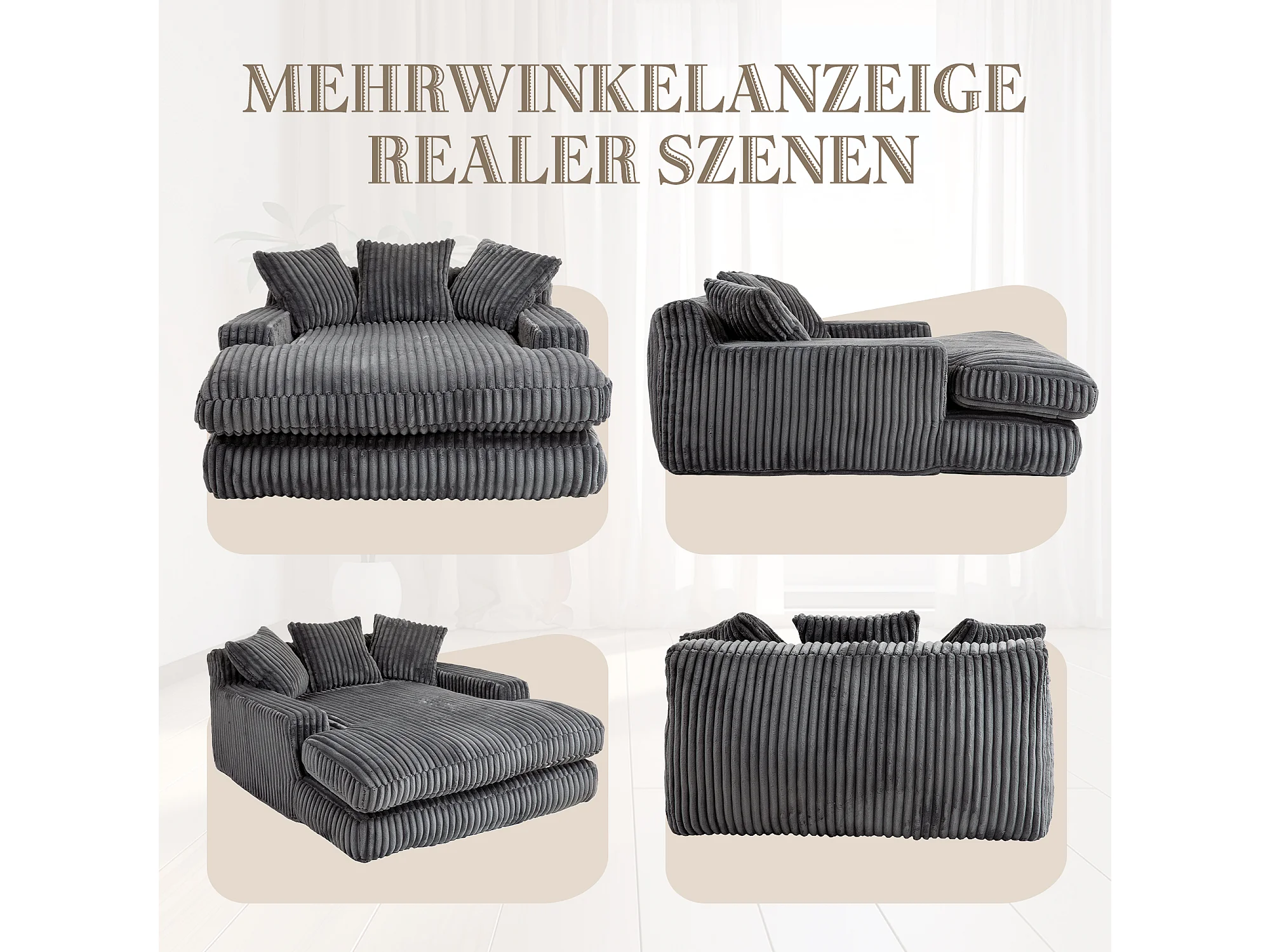 Canapé 2 places en velours côtelé Gris – double couche & assise ultra basse – avec 3 coussins – idéal pour salon - 125x155x63cm