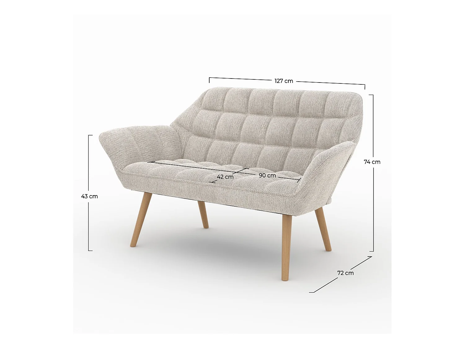 Canapé 2 places en tissu gris clair - Simba