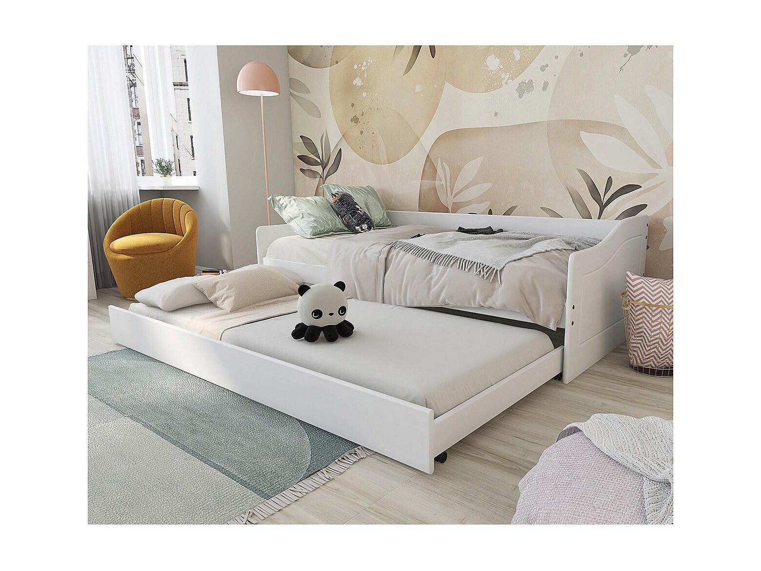 CANTARI - Lit Gigogne 90x200cm en Pin Massif Coloris Blanc