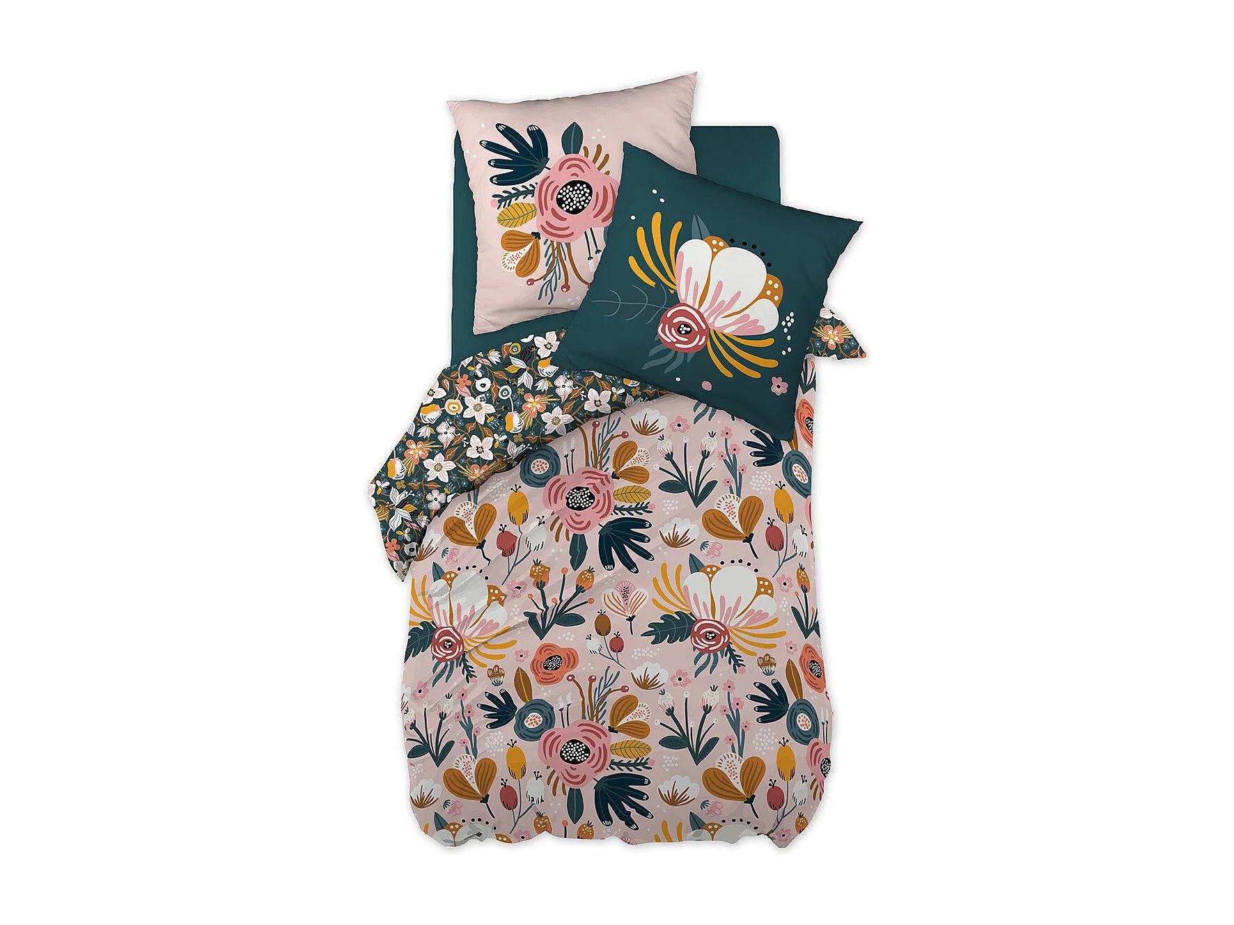 CAPUK - Parure de Lit Coton Motif Rétro Housse de Couette 140x200cm + Taie d'Oreiller