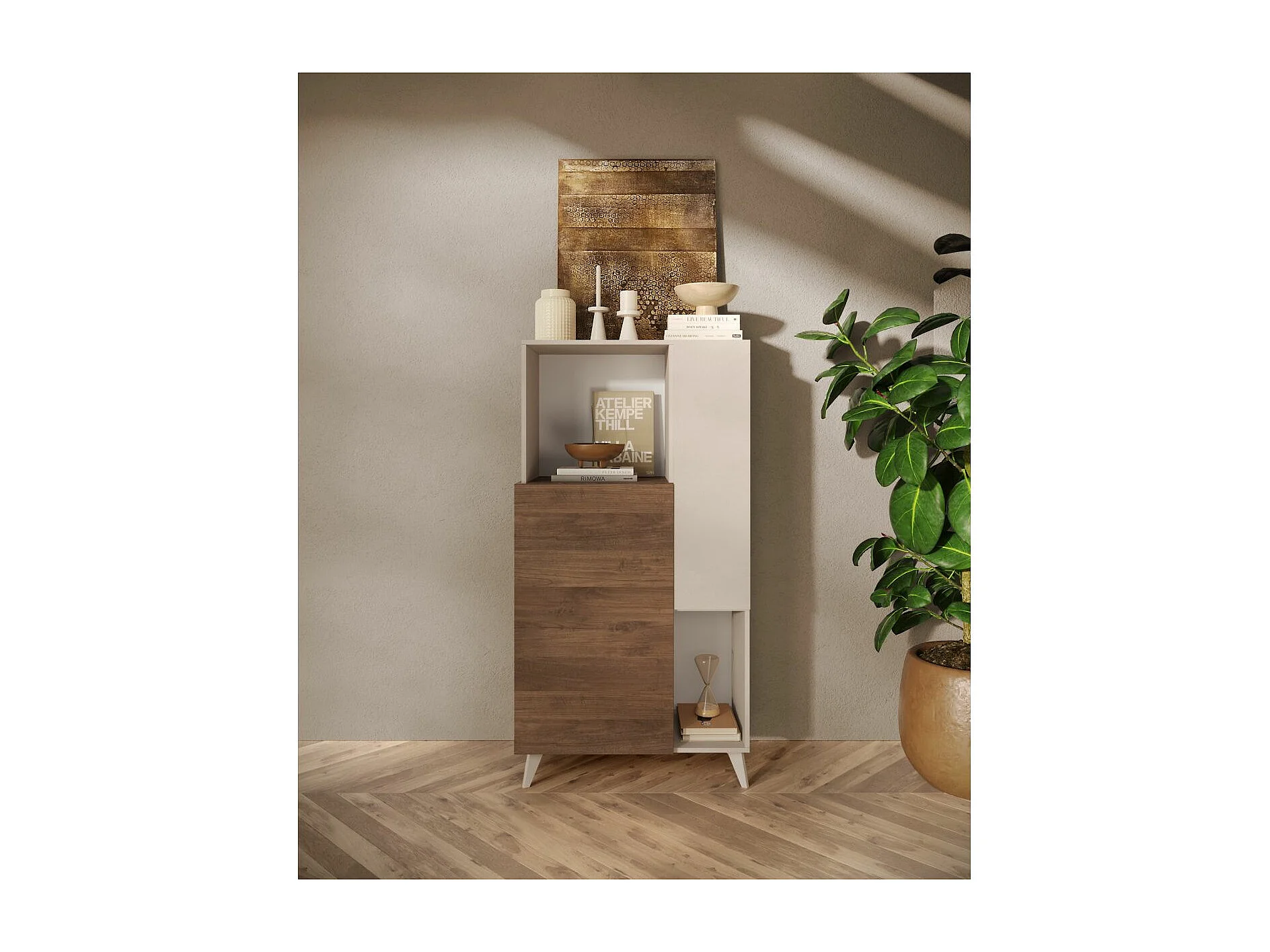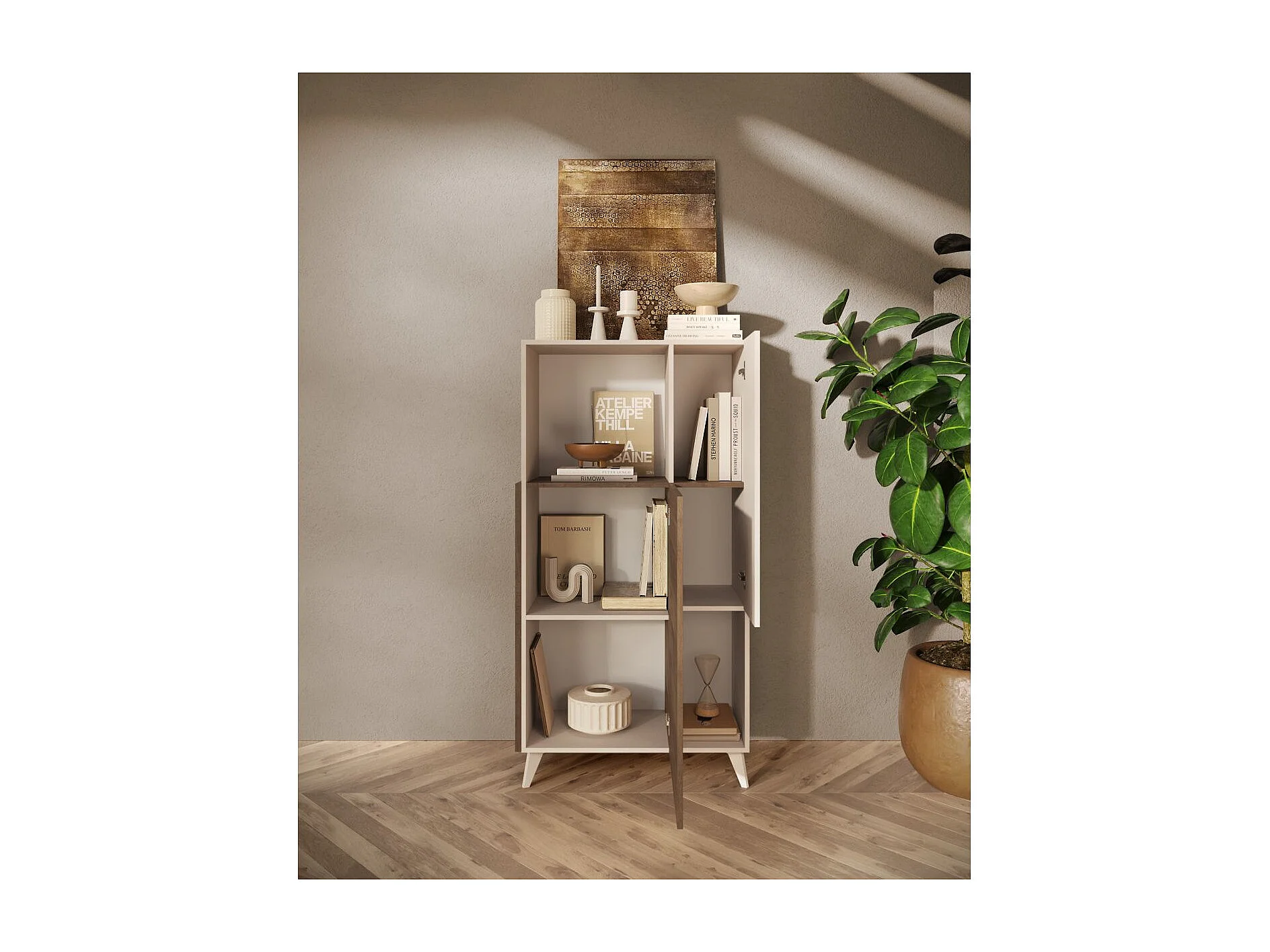 CARLO - Rangement 2 portes 2 Niches Laqué Beige et Aspect Bois Finition Mercure
