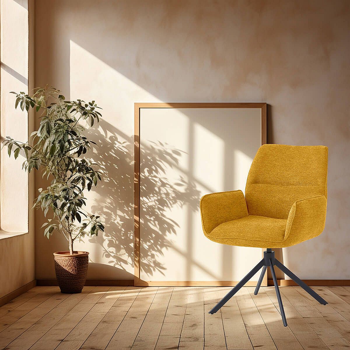 CARLOTTA - Lot de 2 Fauteuils de table Pivotants Tissu Coloris Jaune