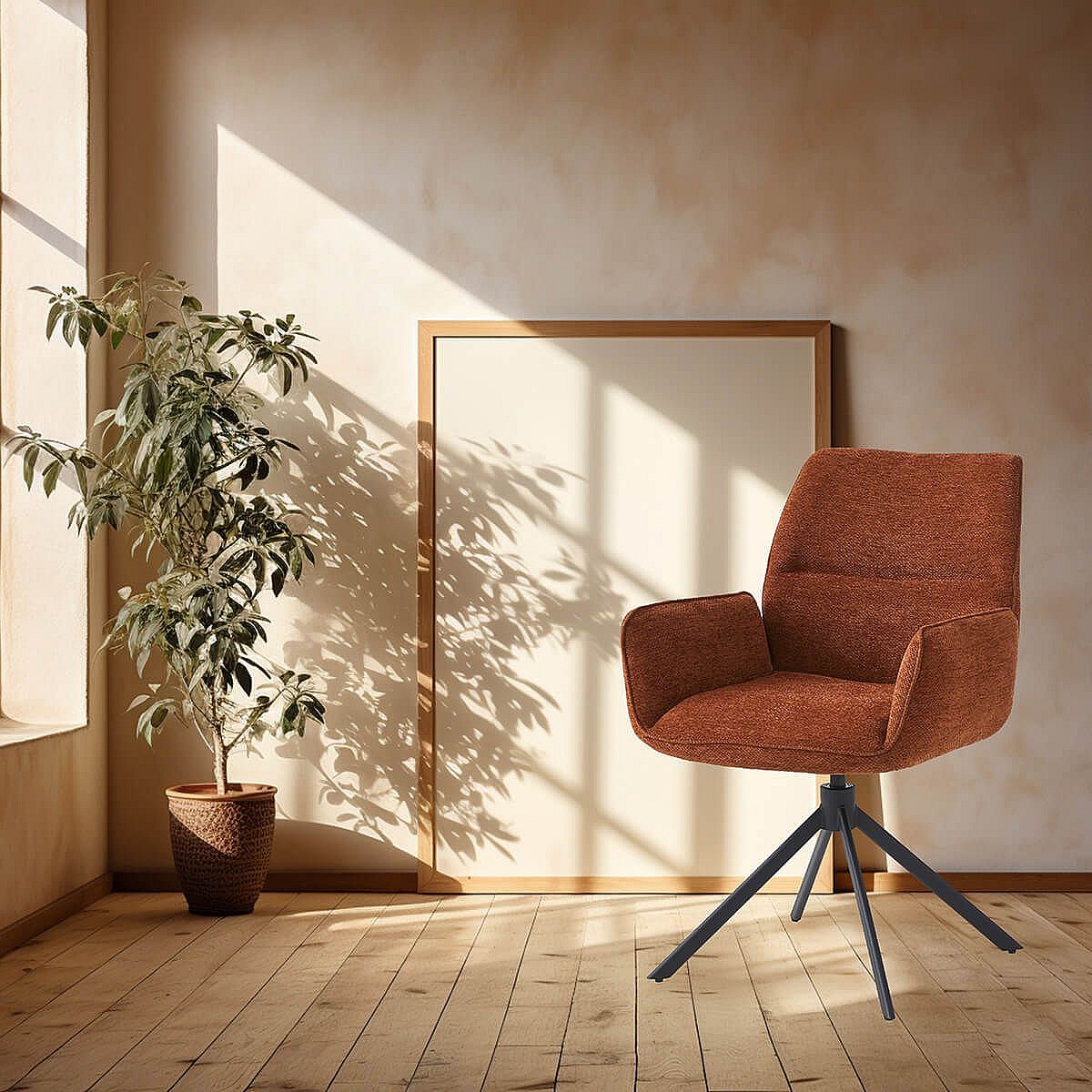 CARLOTTA - Lot de 6 Fauteuils de table Pivotants Tissu Coloris Terracotta
