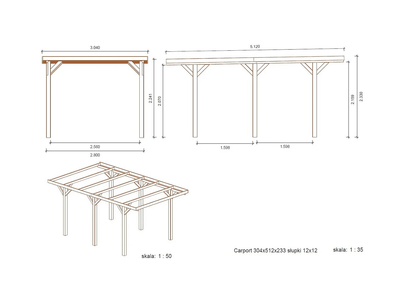Carport, abri de voiture 3.04x5.12 m - 15.56 m2 - CAR10 - ALTANKA