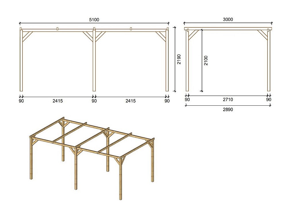 Carport, abri de voiture 3x5.1 m - 15.3 m2 - CAR1 - ALTANKA