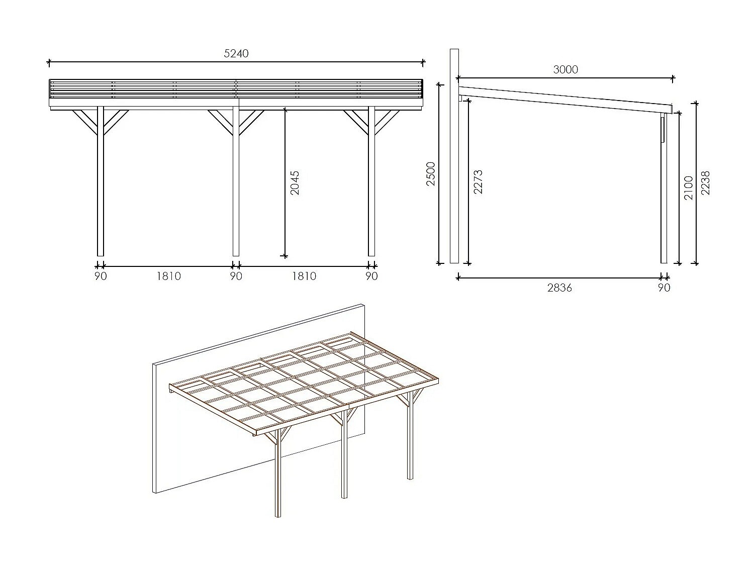 Carport, abri de voiture 3x5.24 m - 15 m2 - couverture PVC  - CAR7-2PVCTR - ALTANKA