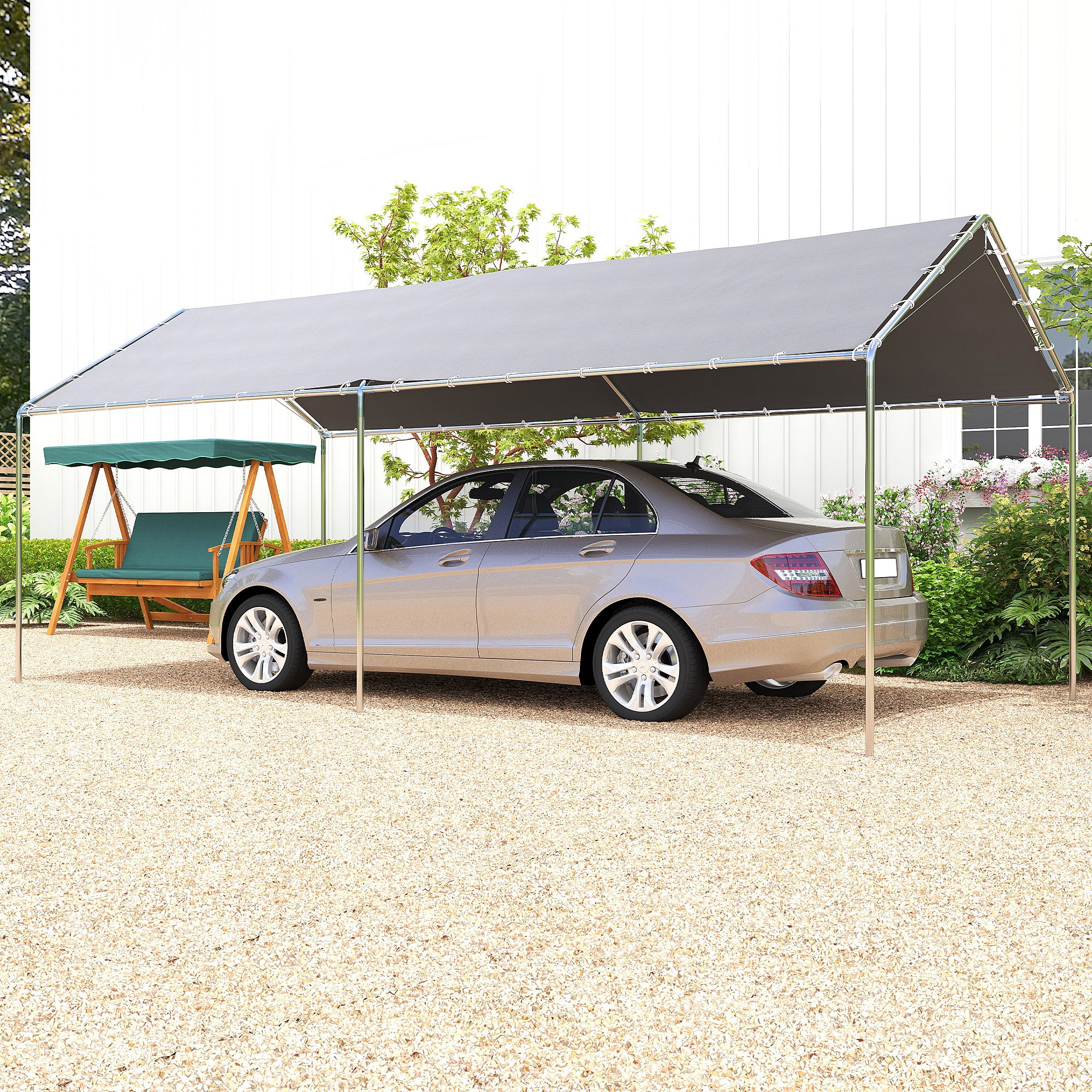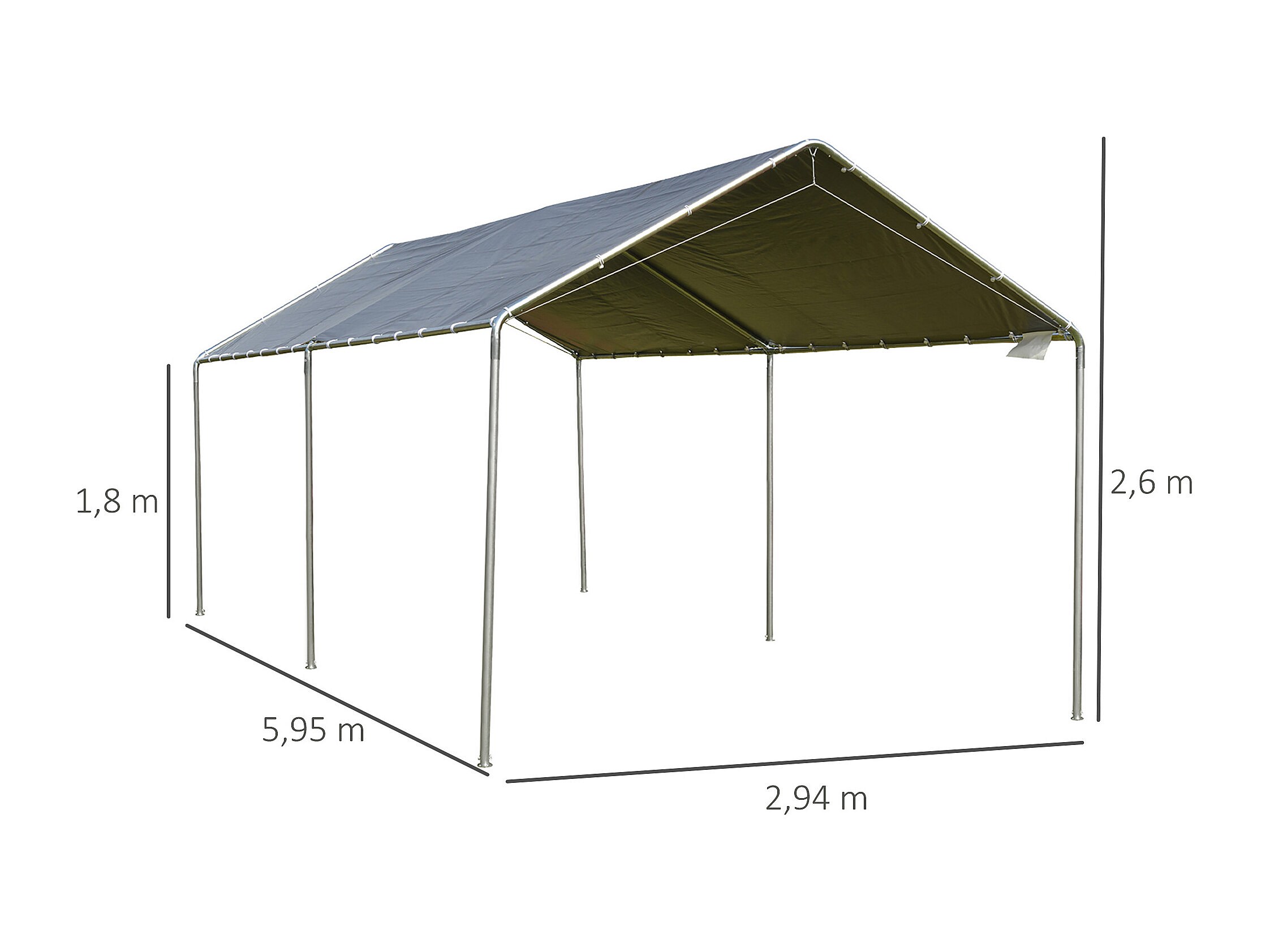 Carport auvent pour voiture 5,95L x 2,90l x 2,60H m acier galvanisé robuste PE haute densité gris