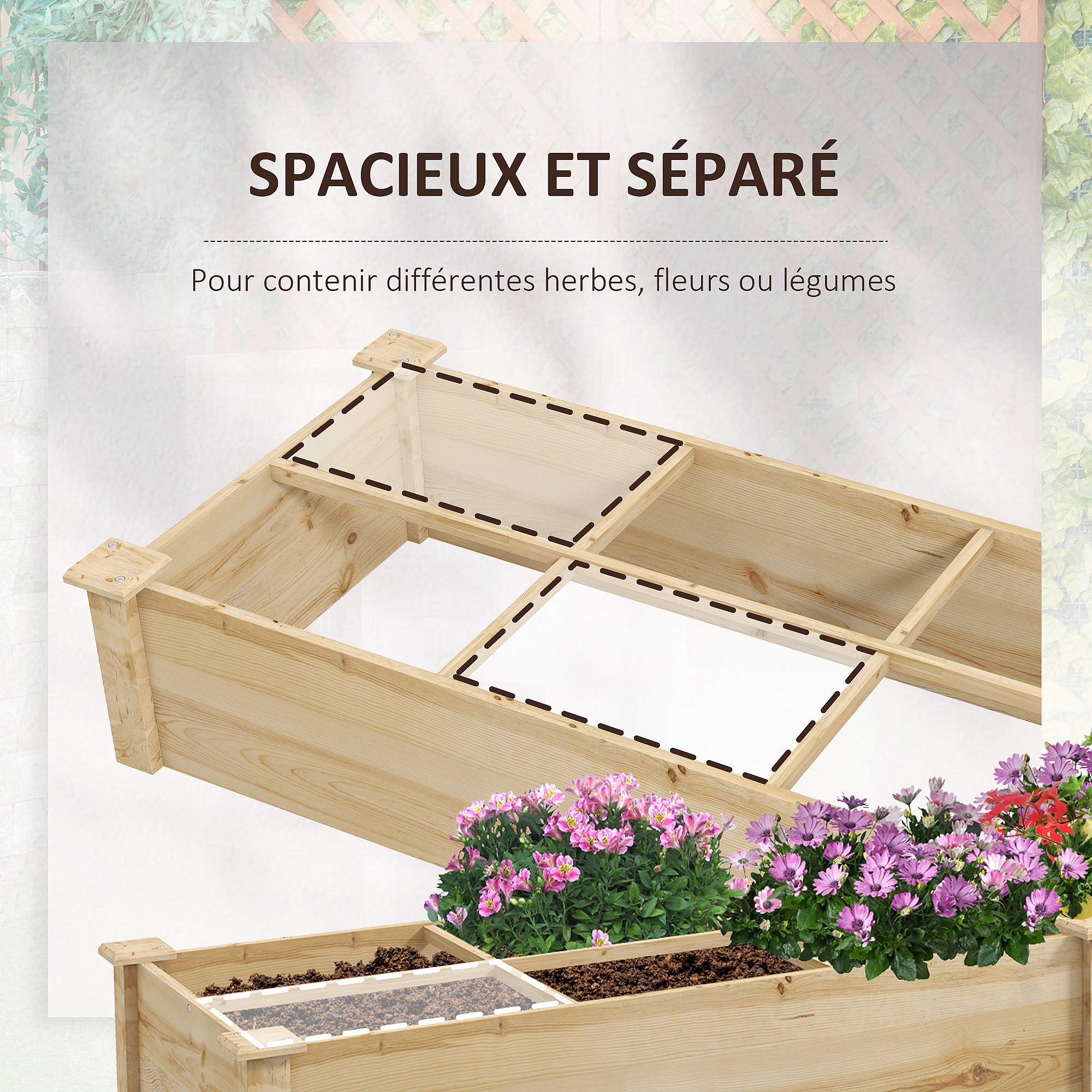 Carré potager de jardin dim. 237L x 60l x 25H cm séparations incluses bois de sapin