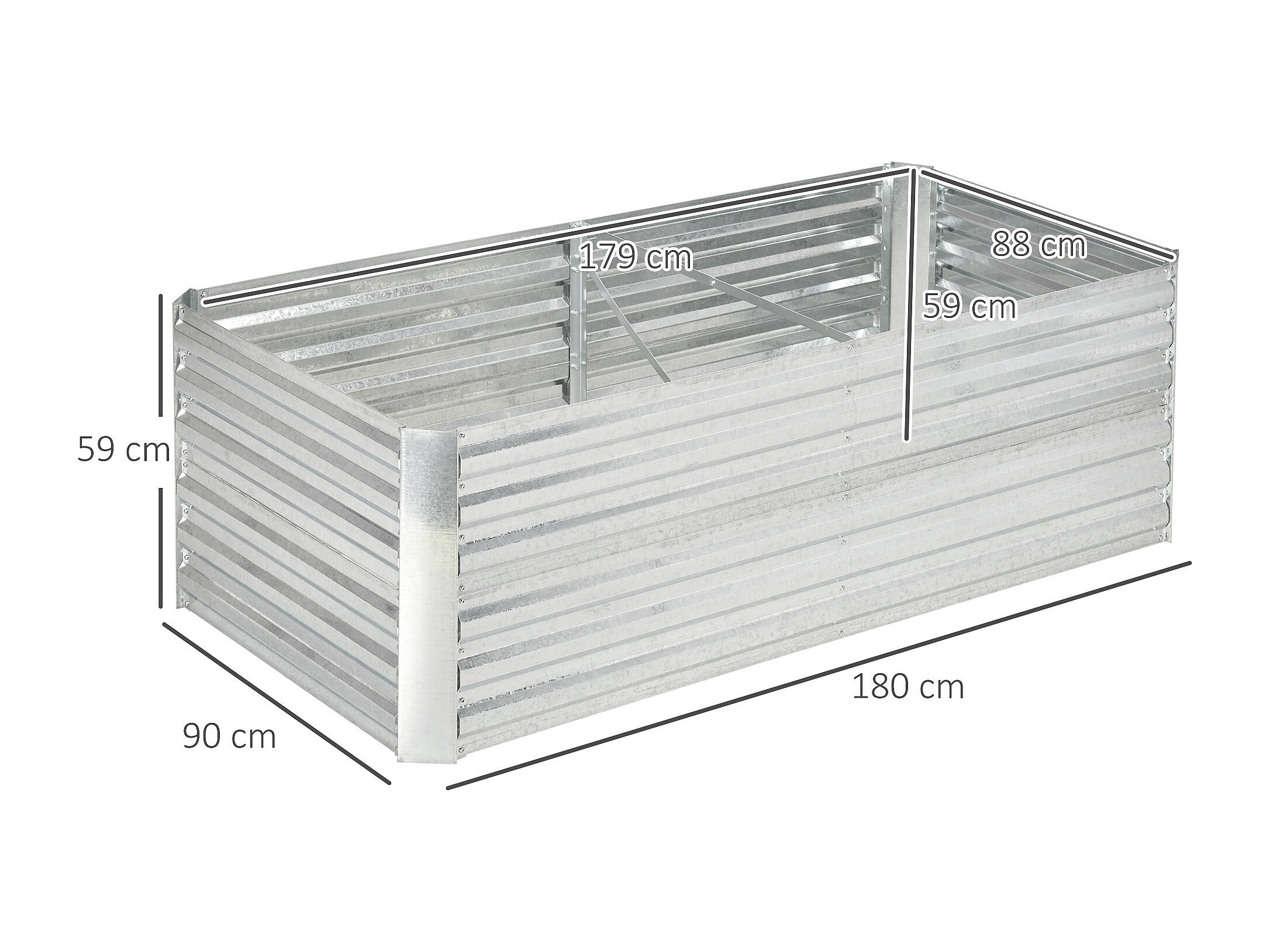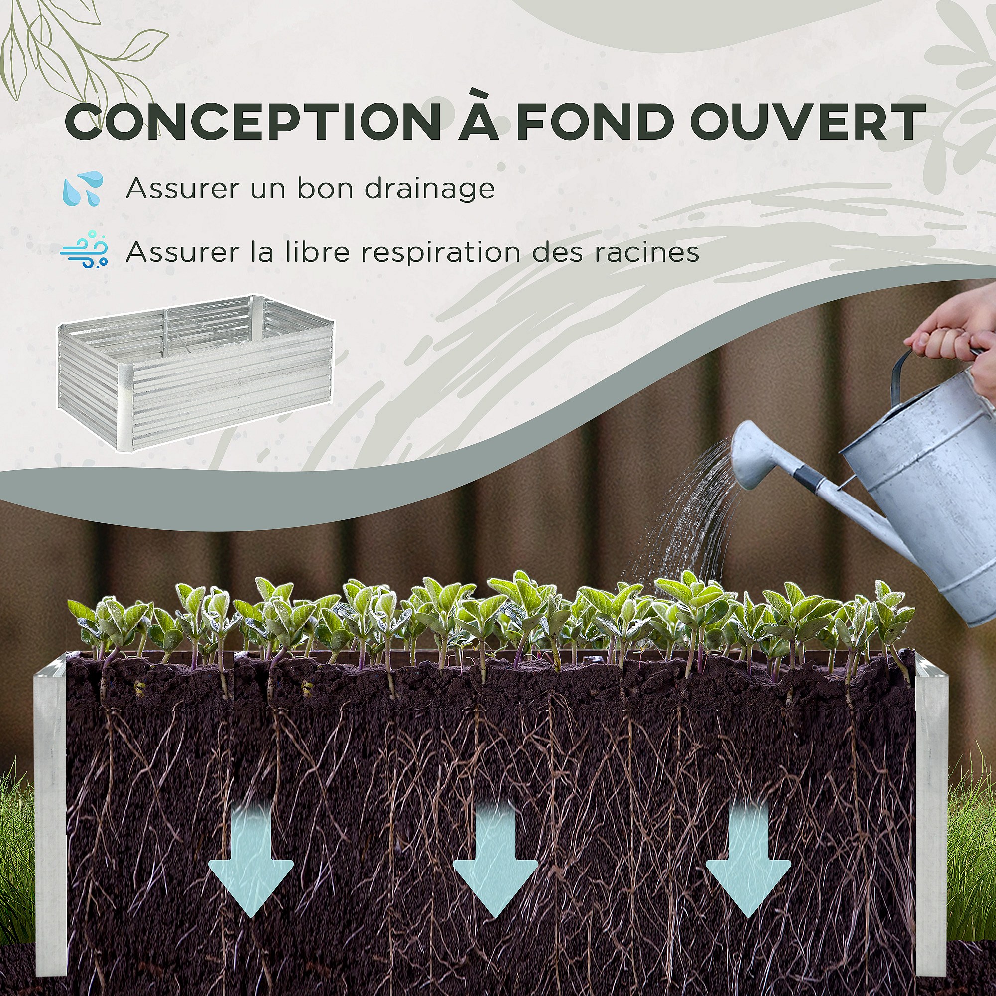 Carré potager de jardin renforcé - dim. 180L x 90l x 59H cm - tôle d'acier ondulée galvanisée