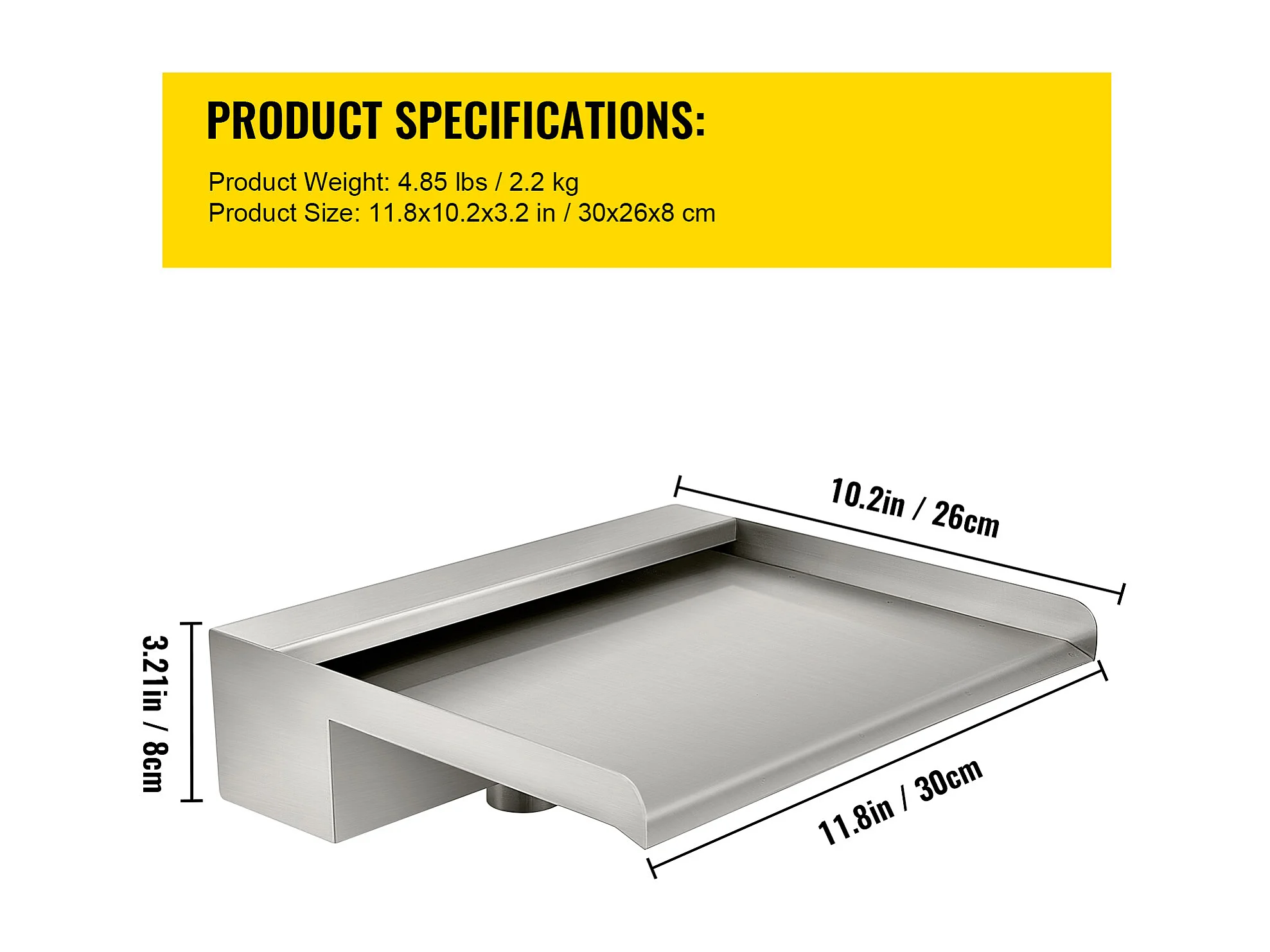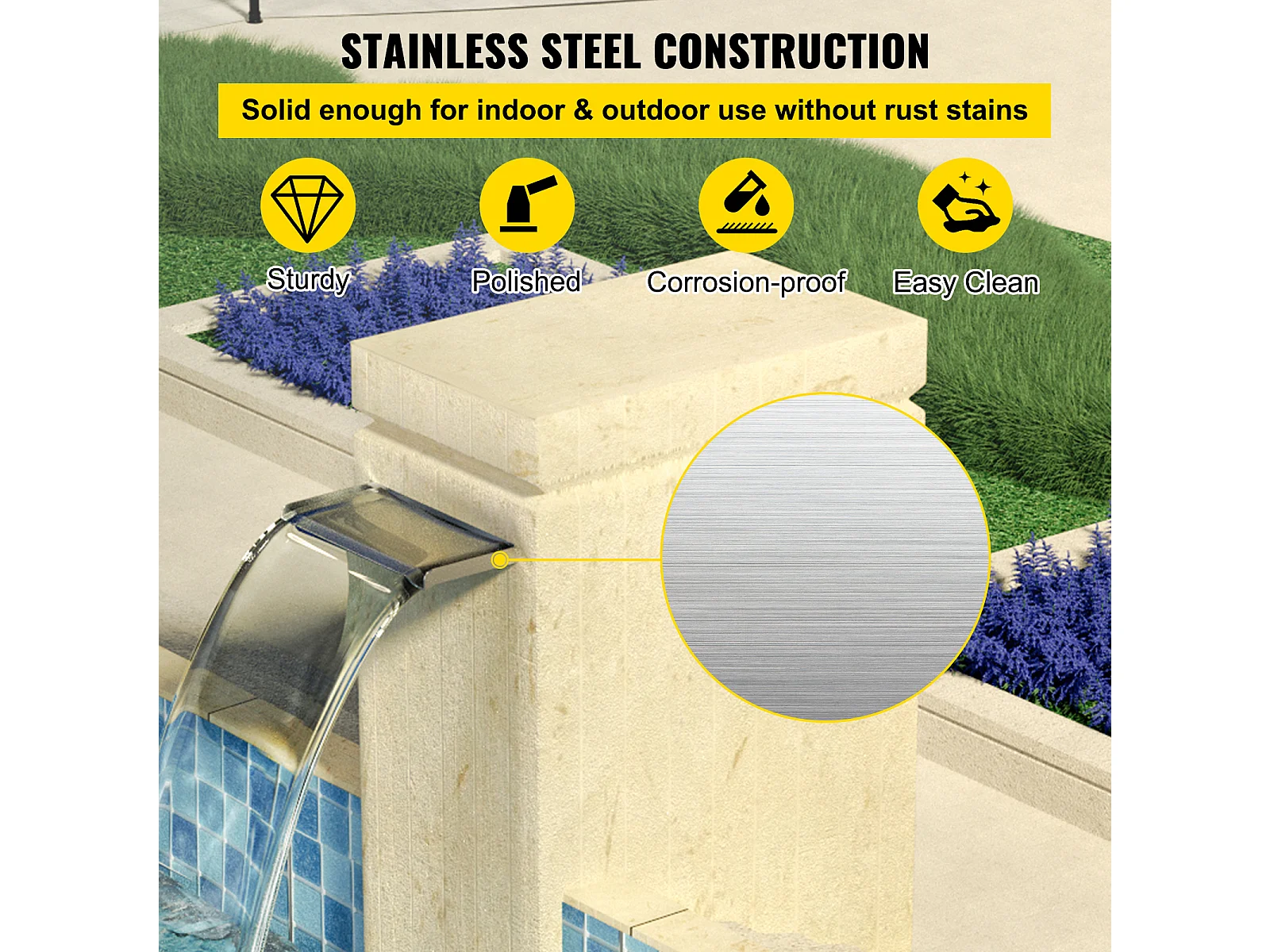 Cascade SucceBuy Lame de Cascade 30CM en Acier Inoxydable pour Déversoir de Cascade Fontaine en Cascade