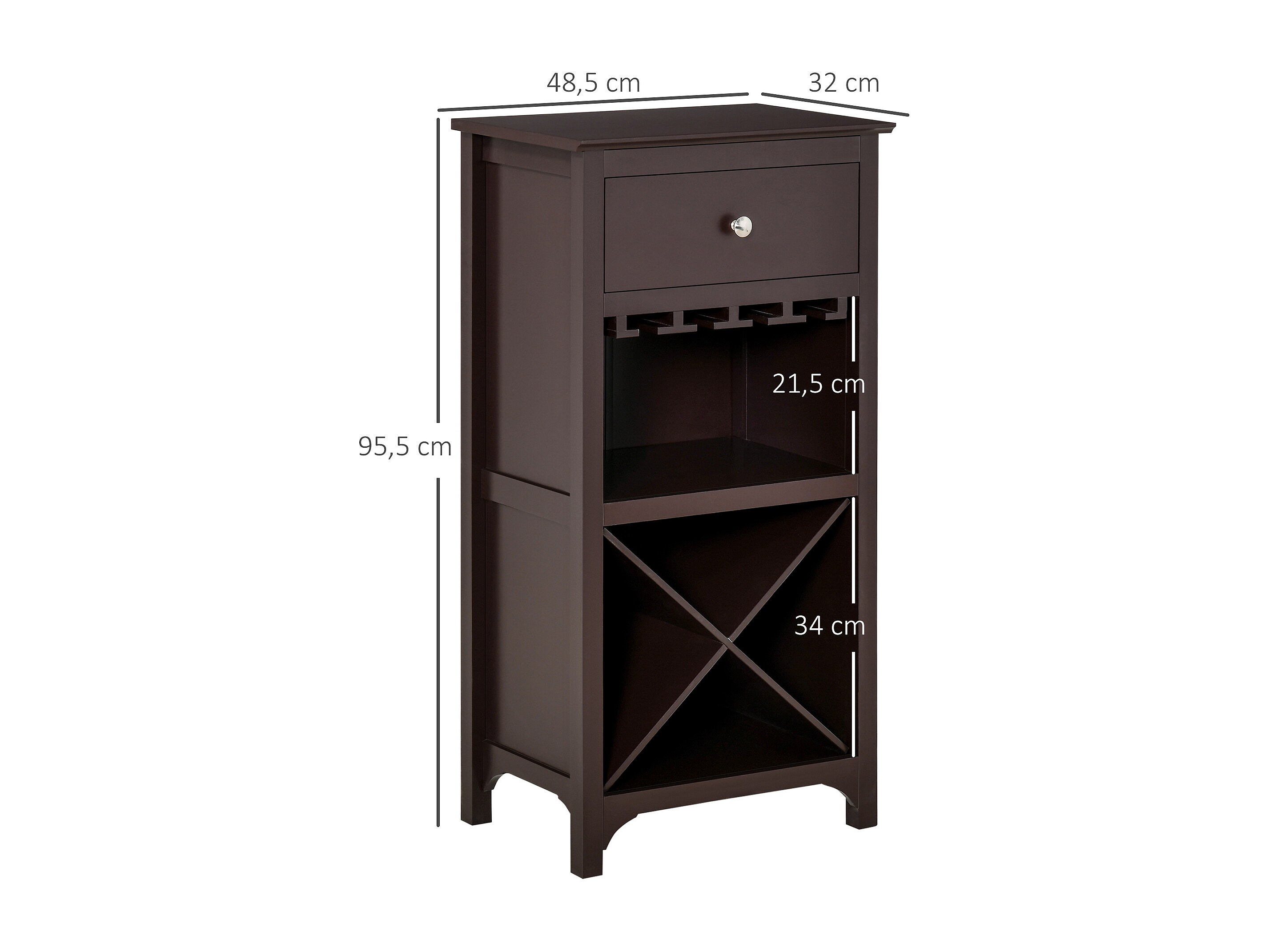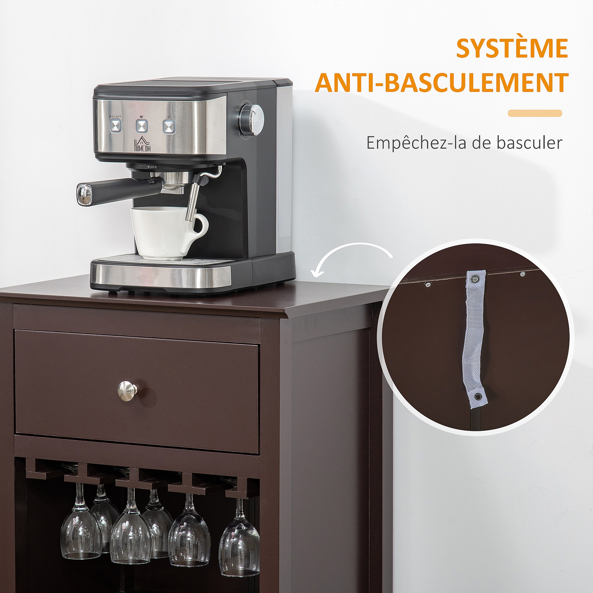 Casier à vin design industriel étagère à bouteilles 12 bouteilles support verres à vin intégré MDF brun foncé