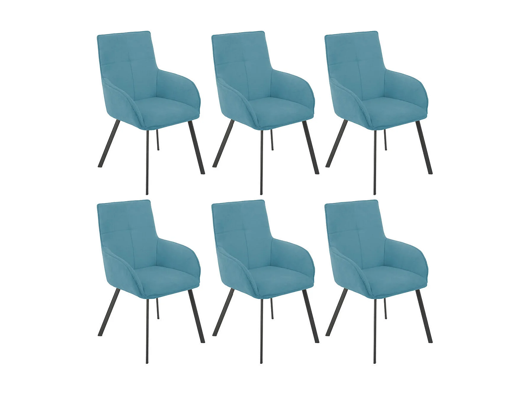 CATILA - Lot de 6 Fauteuils Bleus Piètement Gris Mat