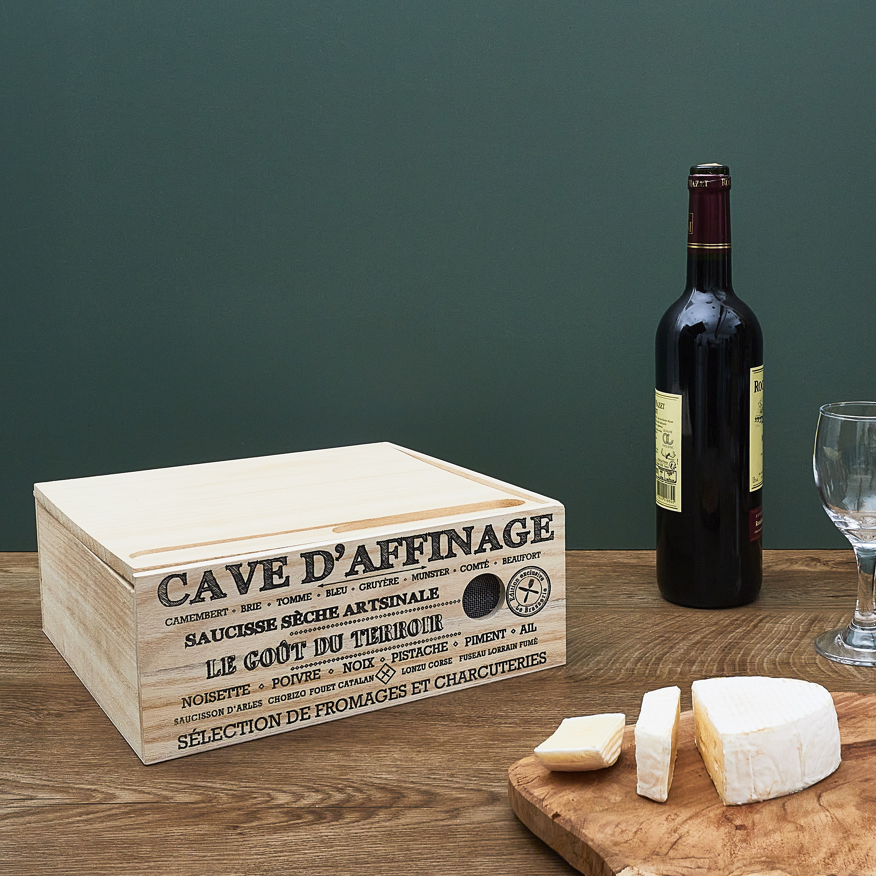 Cave A Fromage Bois Avec Couteau Noir, Beige