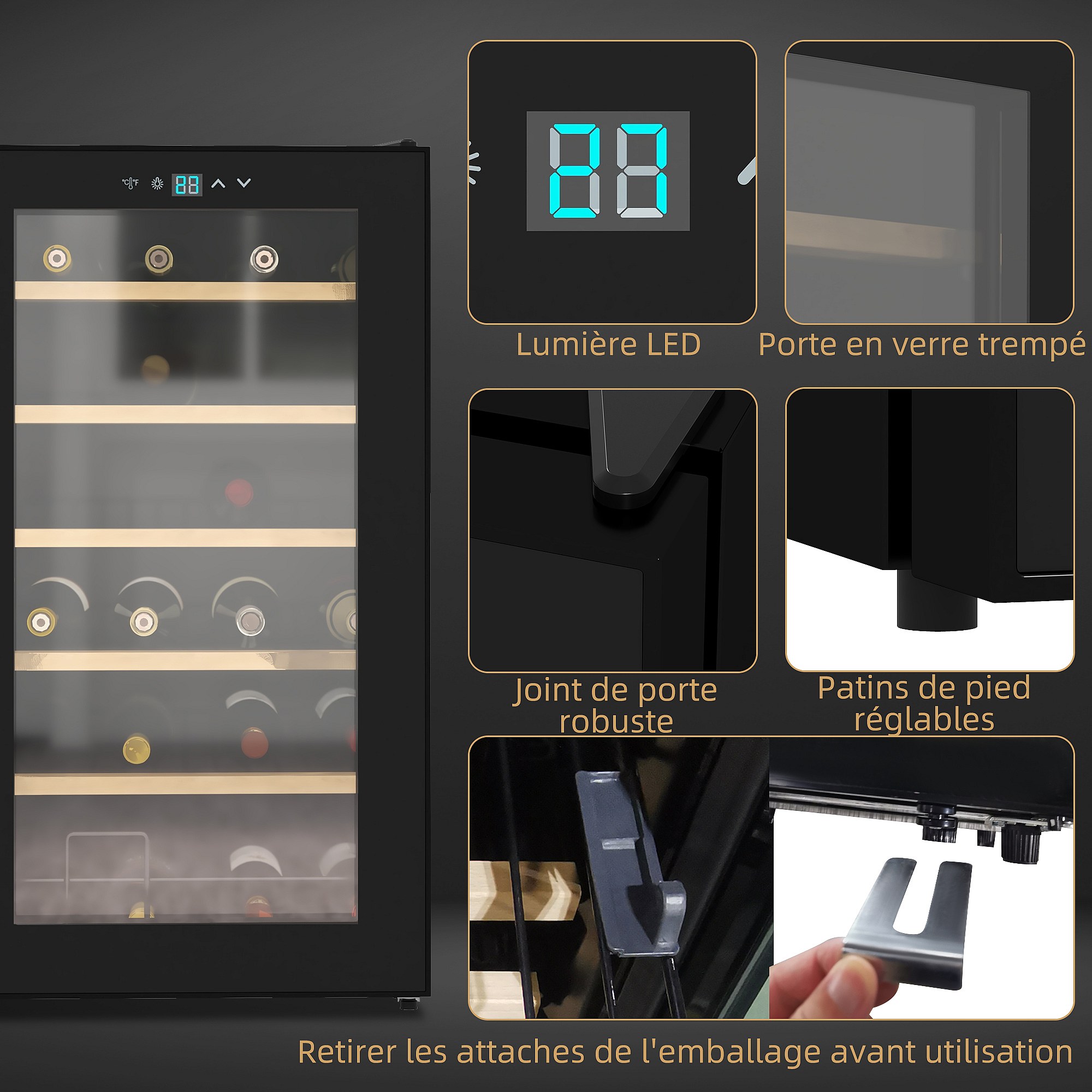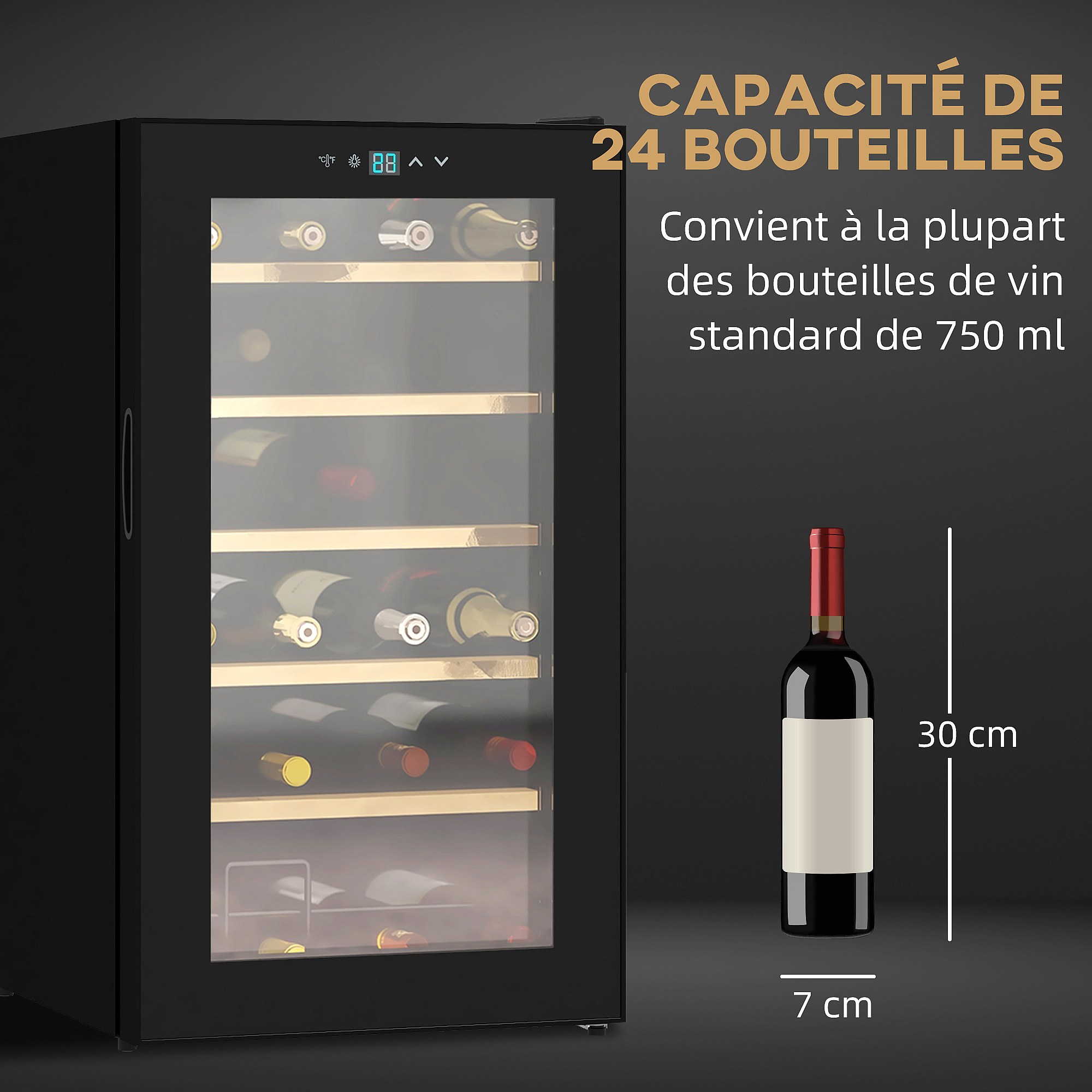 Cave à vin thermoélectrique 24 bouteilles panneau tactile écran LCD éclairage intérieur LED température réglable 5-20°C noir