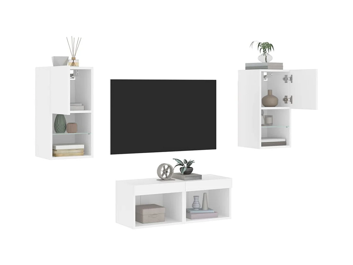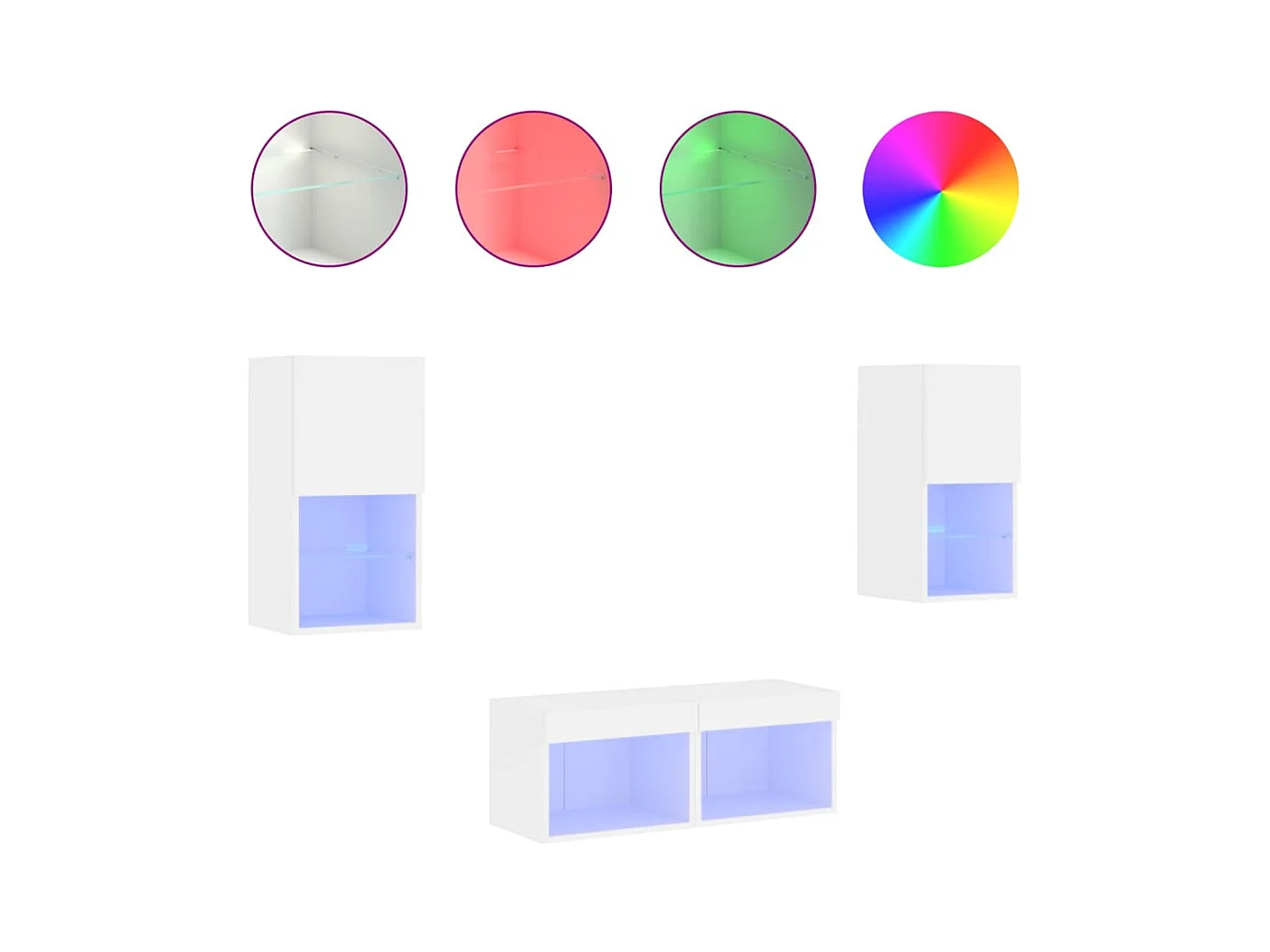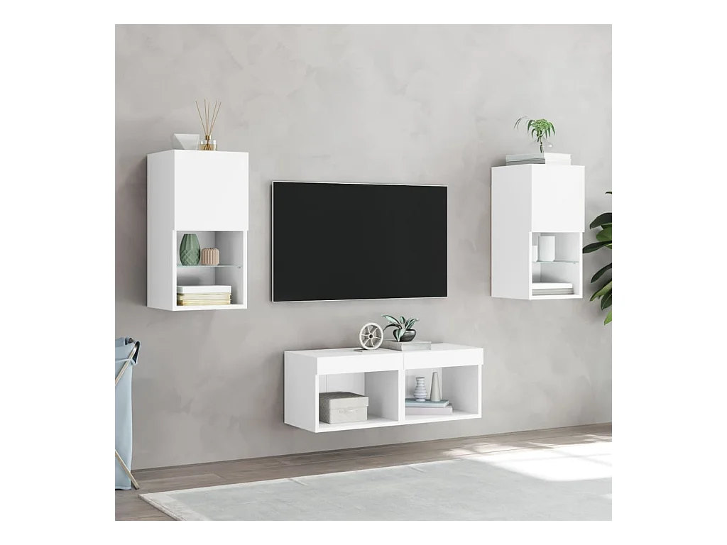 Cecilia Fernanda Meuble TV muraux 4 pcs avec lumières LED blanc