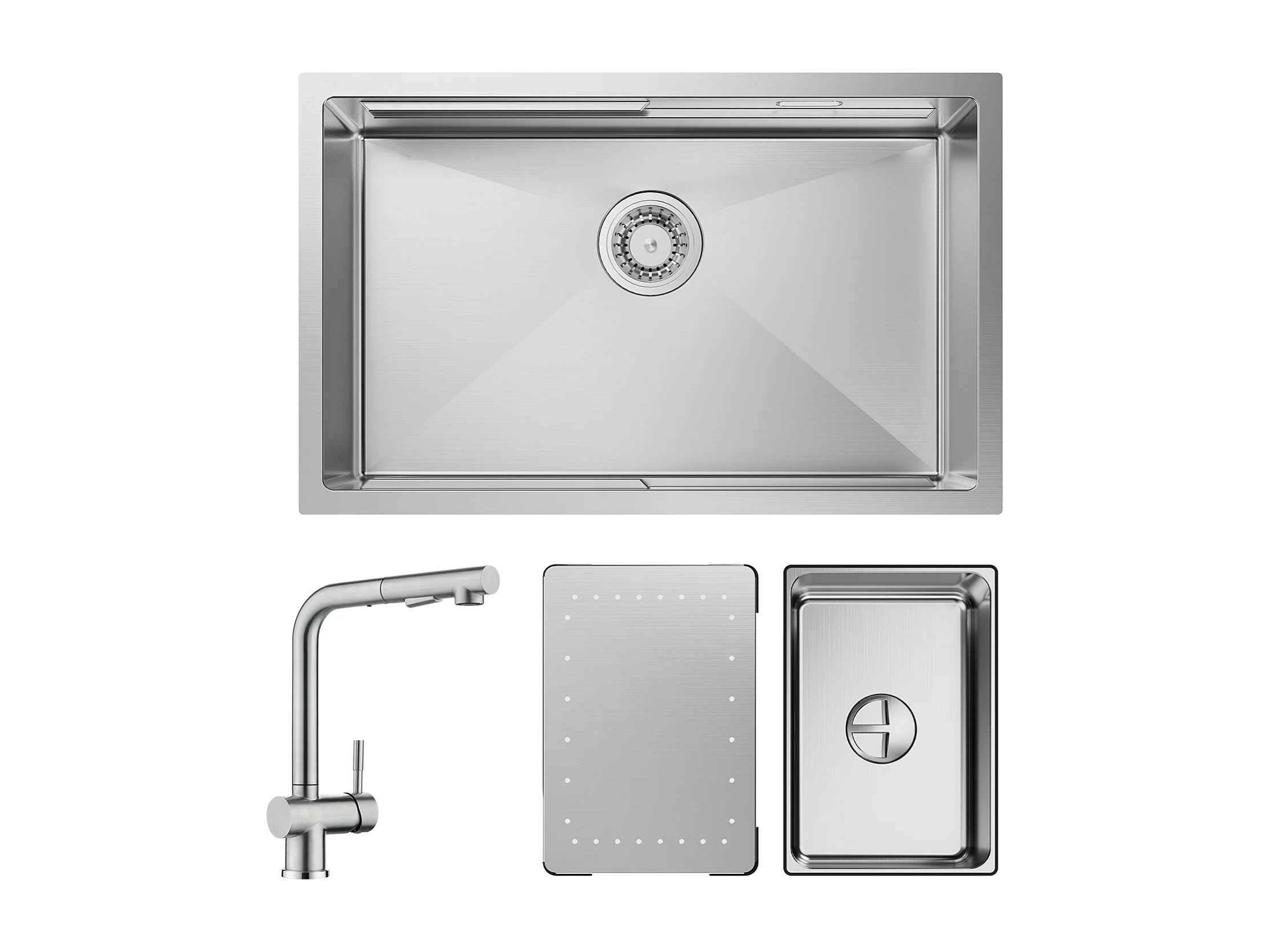 Cecipa max Évier Cuisine 1 Bac 70×44×21CM Évier à Encastrer Inox Brossé avec Egouttoir et Vasque + Mitigeur Brossé avec Douchette Robinet Douchette