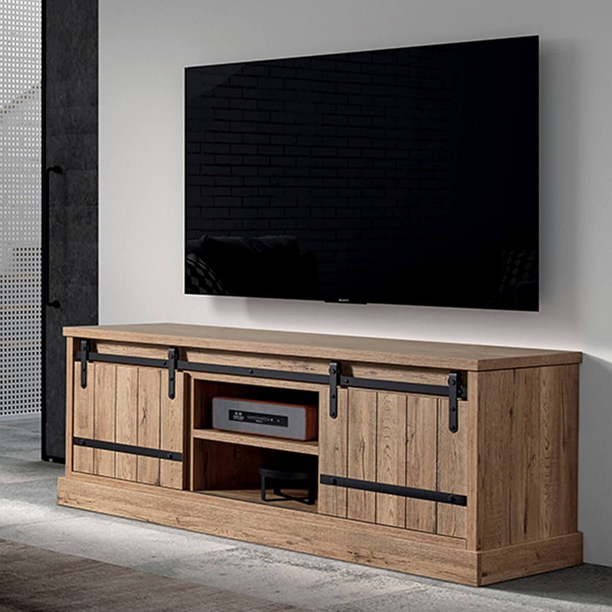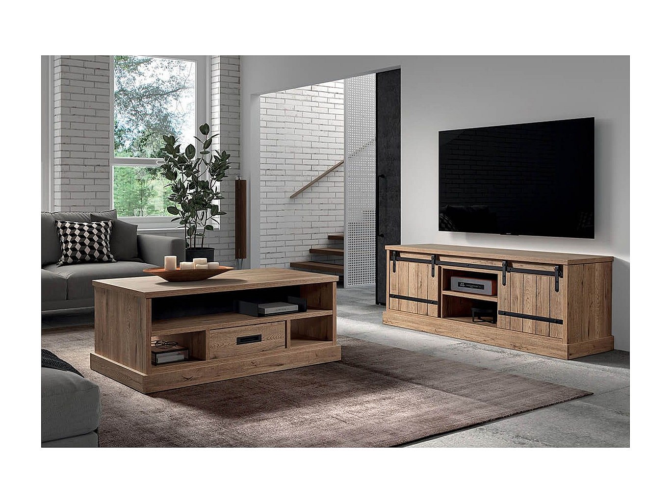CEDRA - Meuble TV Industriel 2 Portes Coulissantes