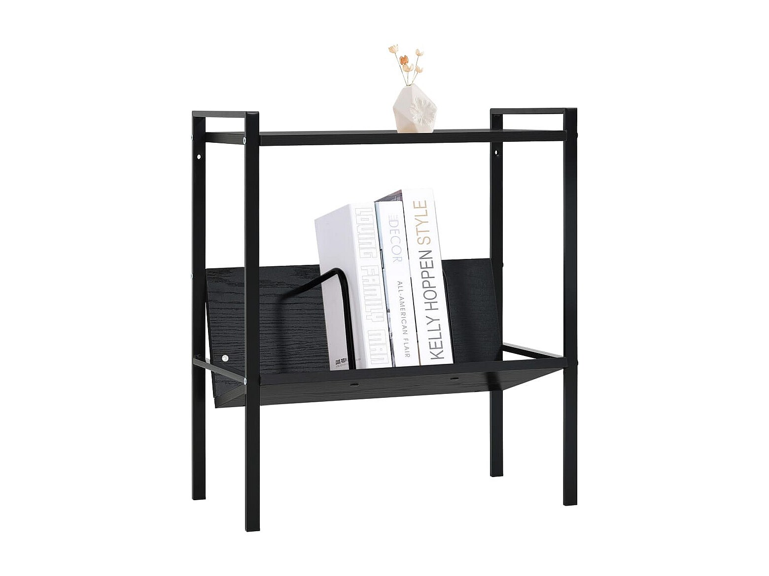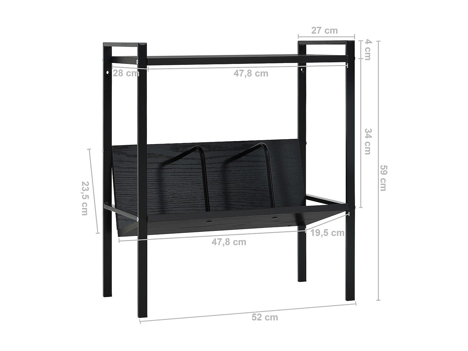 Centre Hall Bibliothèque 2 niveaux Noir 52x28x59 cm bois d'ingénierie