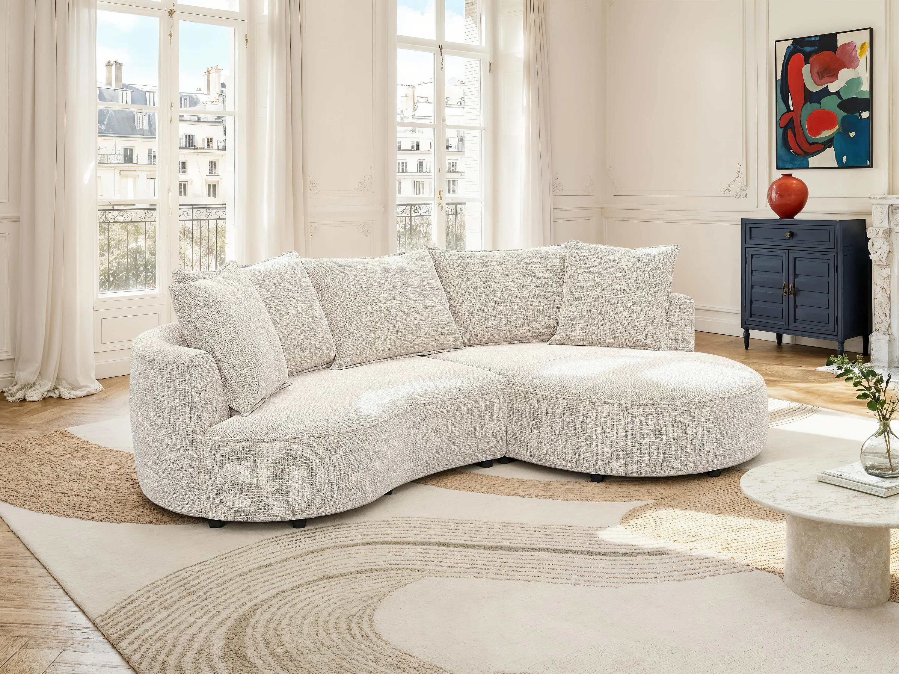 Canapé d'angle droit en tissu chenille beige CEPRANO de Maison Céphy