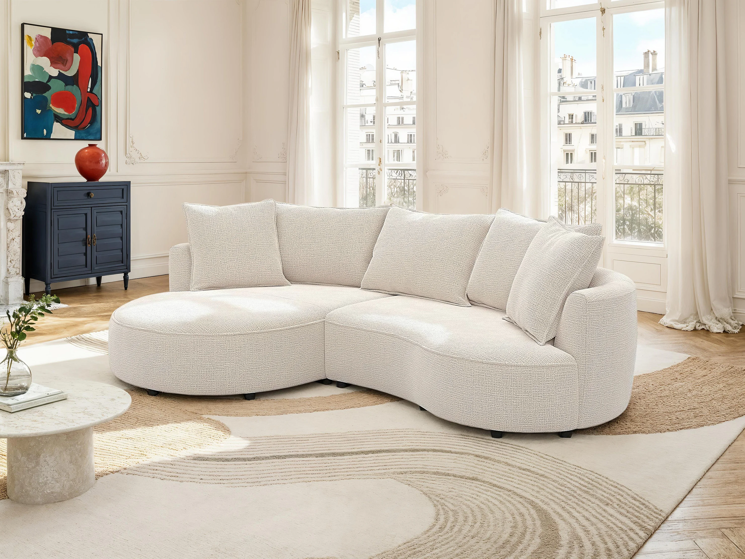 Canapé d'angle gauche en tissu chenille beige CEPRANO de Maison Céphy