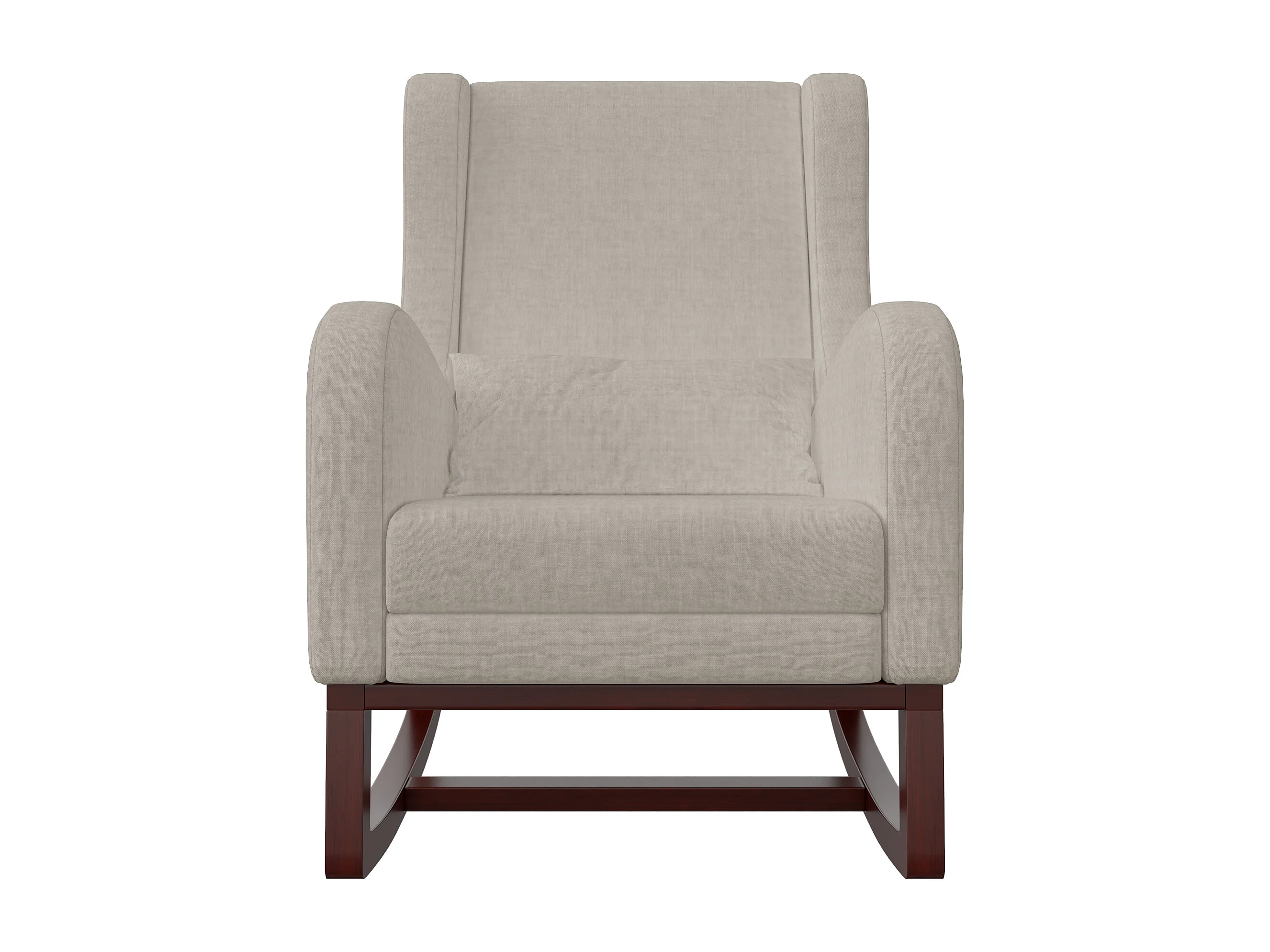 Chaise à bascule avec repose-pieds, pieds antidérapants en bois massif, poches des deux côtés, coton et lin, beige