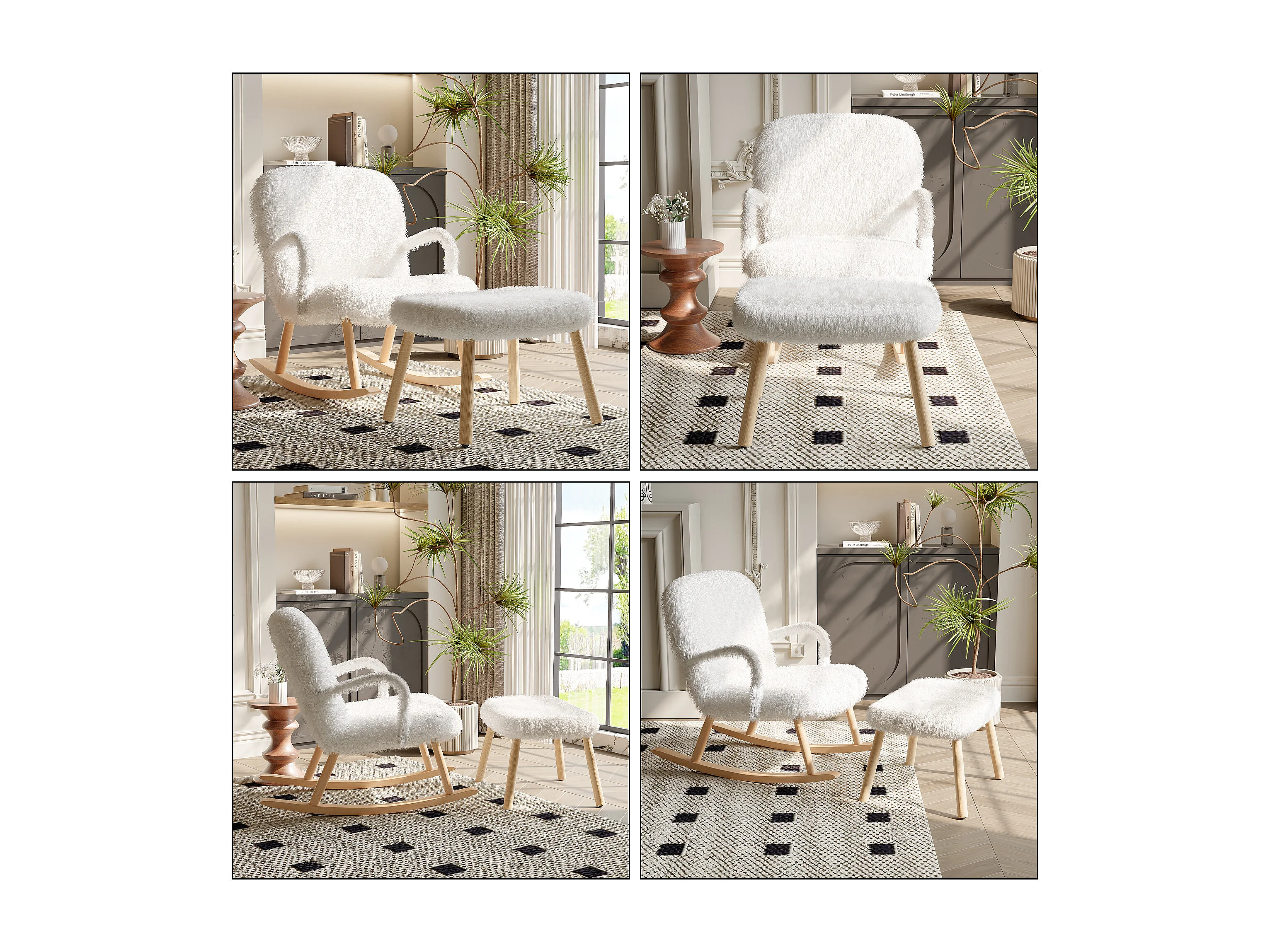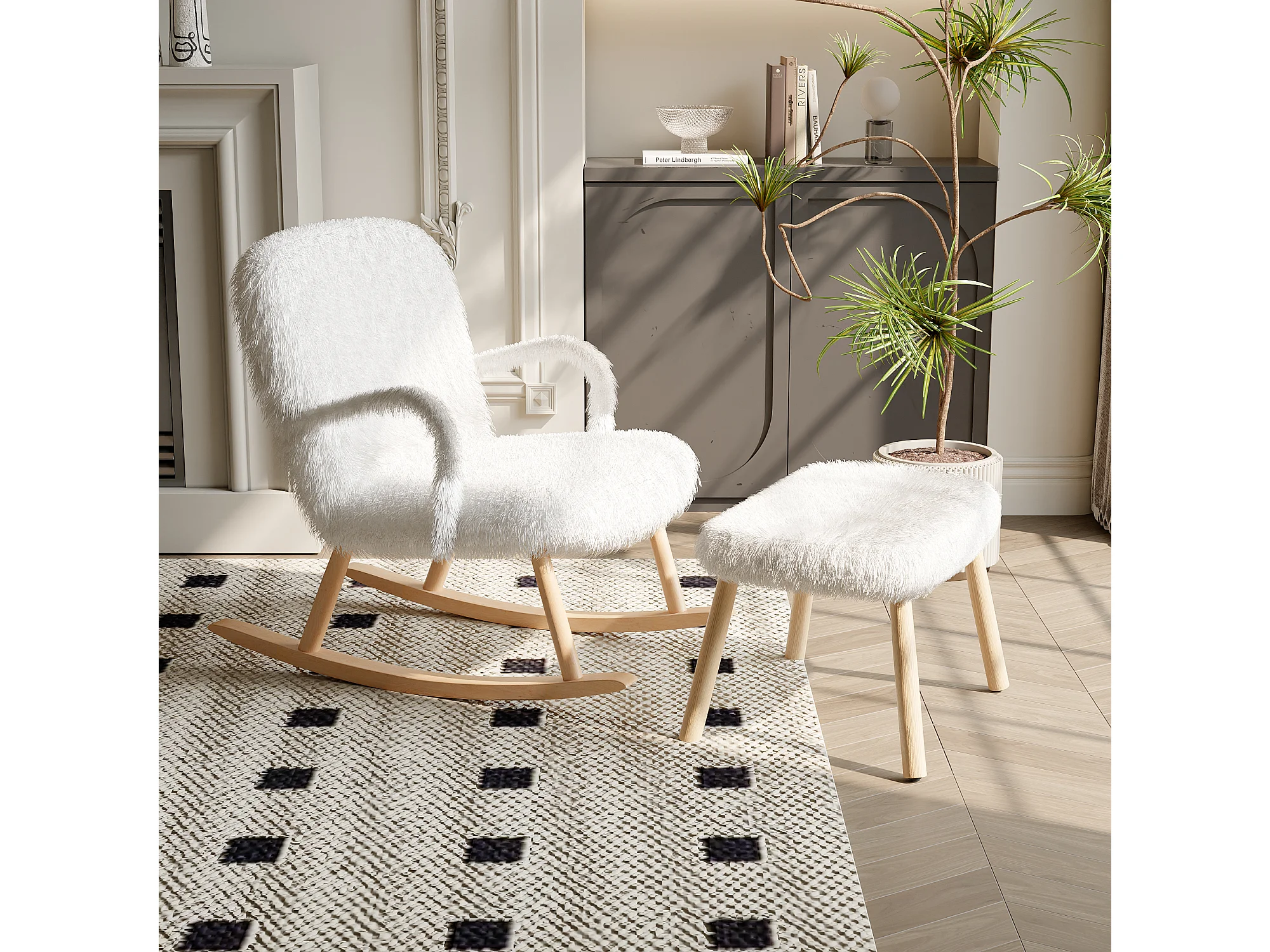 Chaise à bascule en cachemire avec ottoman , chaise à bascule rembourrée avec poche , blanc