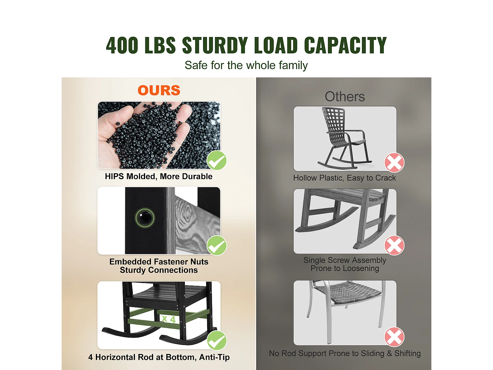 Lot de 2 Chaise à Bascule SucceBuy, 2 Fauteuils à Bascule pour Espaces Extérieurs, Fabriquée en Polystyrène Haute Densité