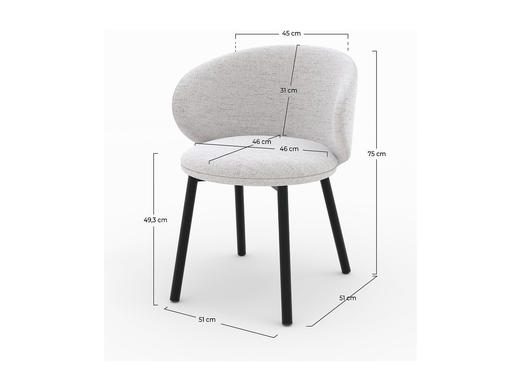 Lot de 2 chaises en tissu gris clair chiné et pieds noirs - Cécilia