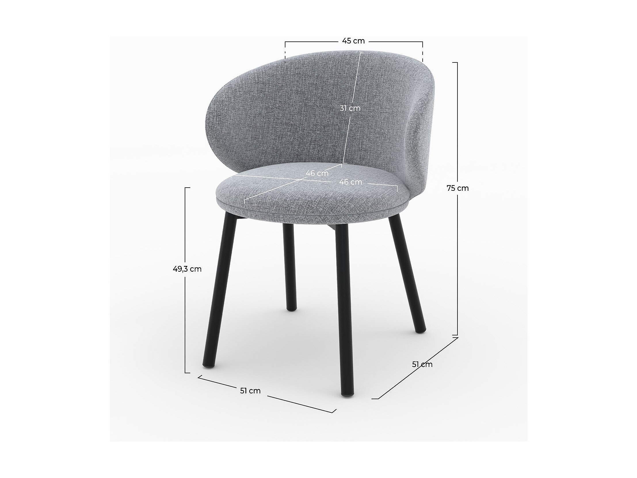Lot de 2 chaises en tissu gris foncé chiné et pieds noirs - Cécilia