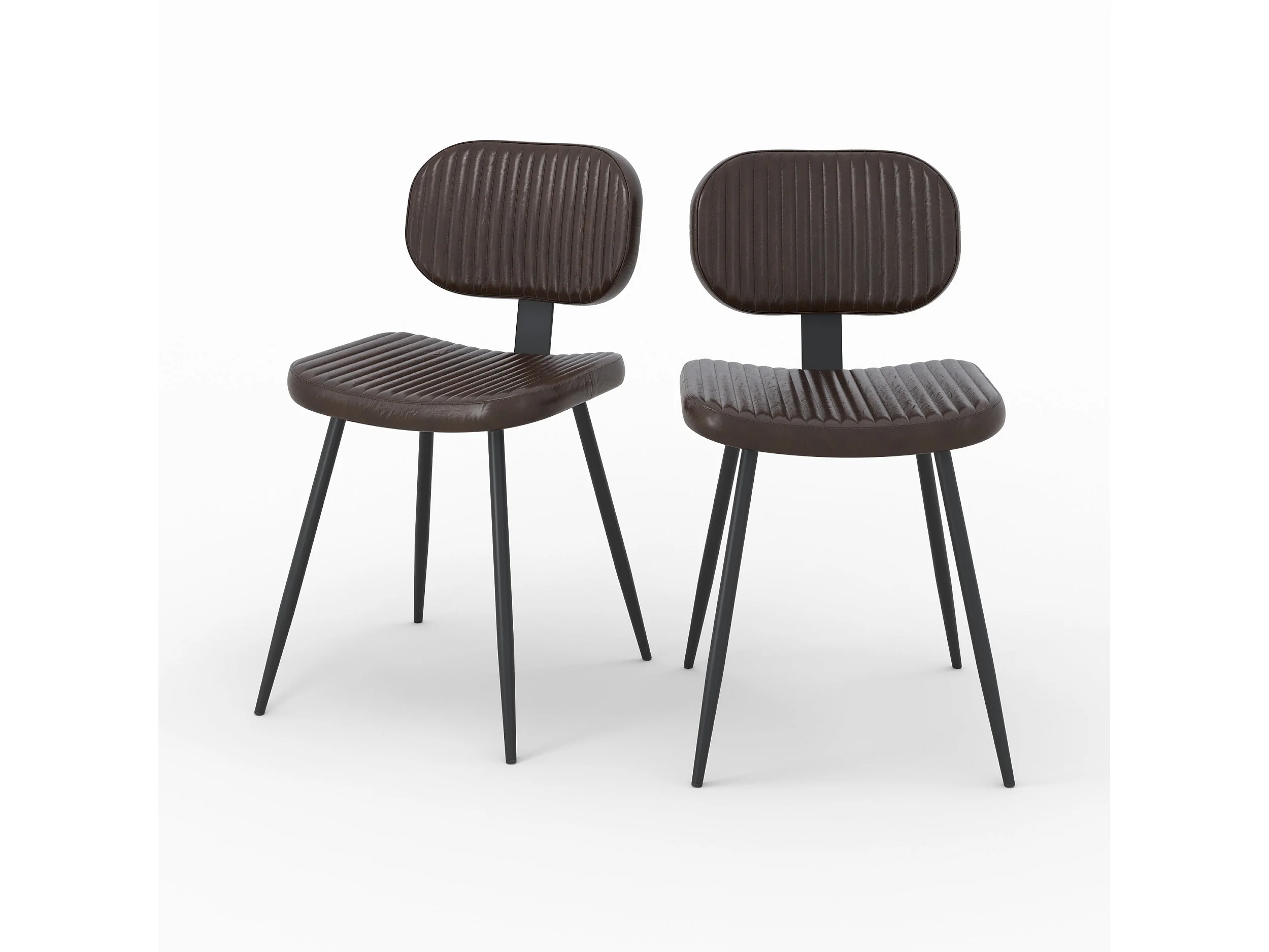 Lot de 2 chaises en cuir marron et pieds en métal noir - Clovis