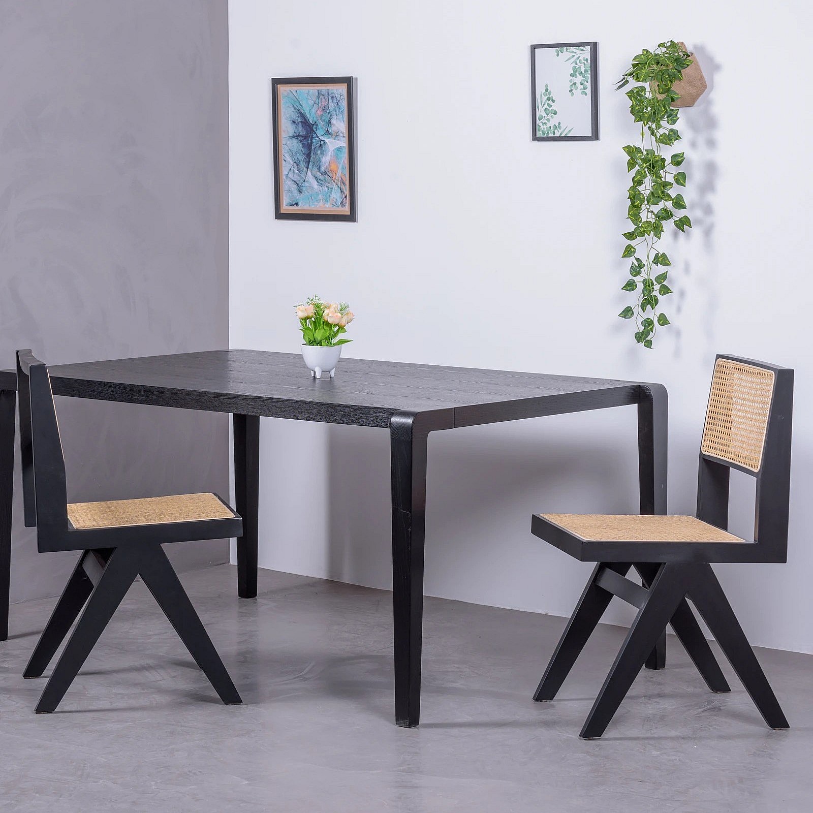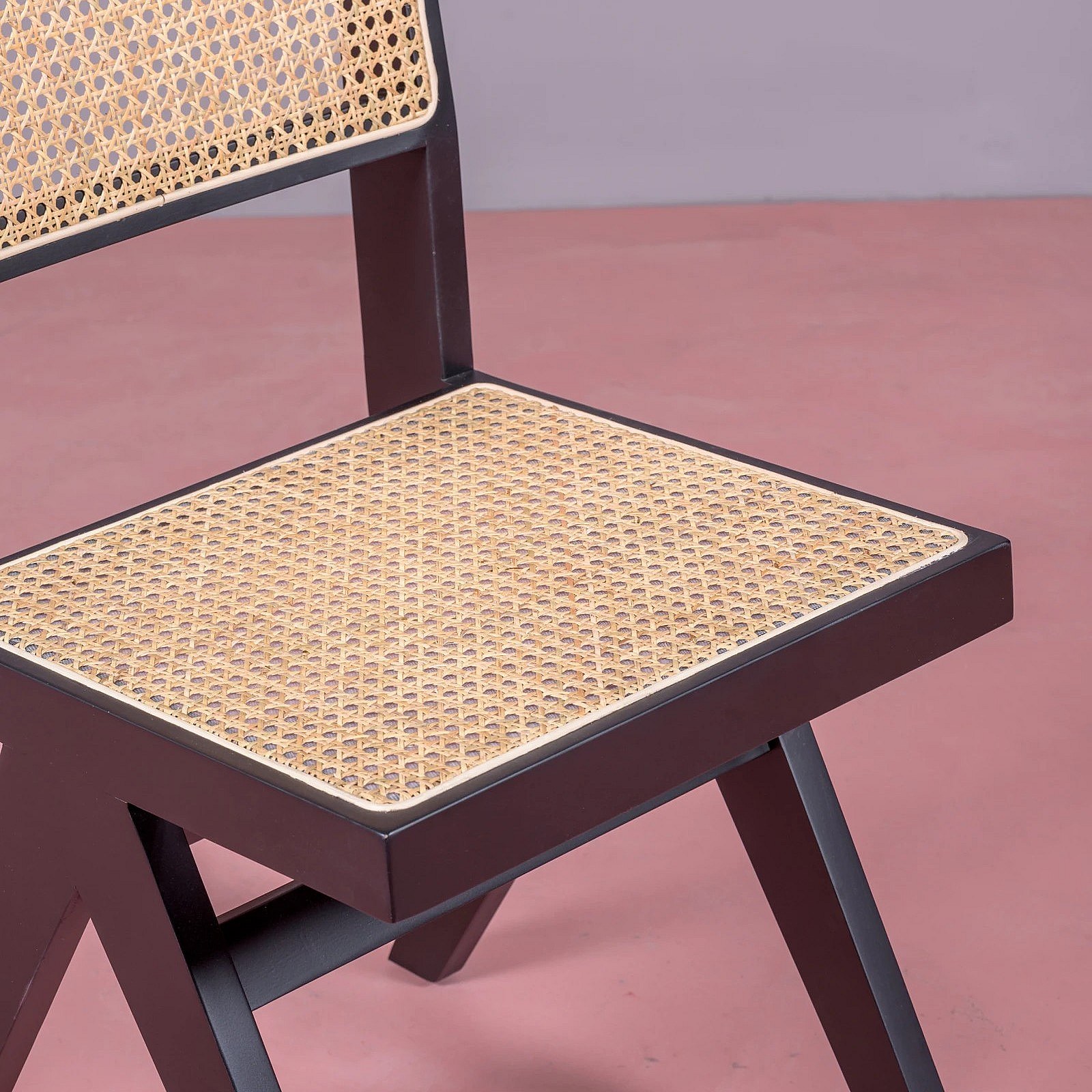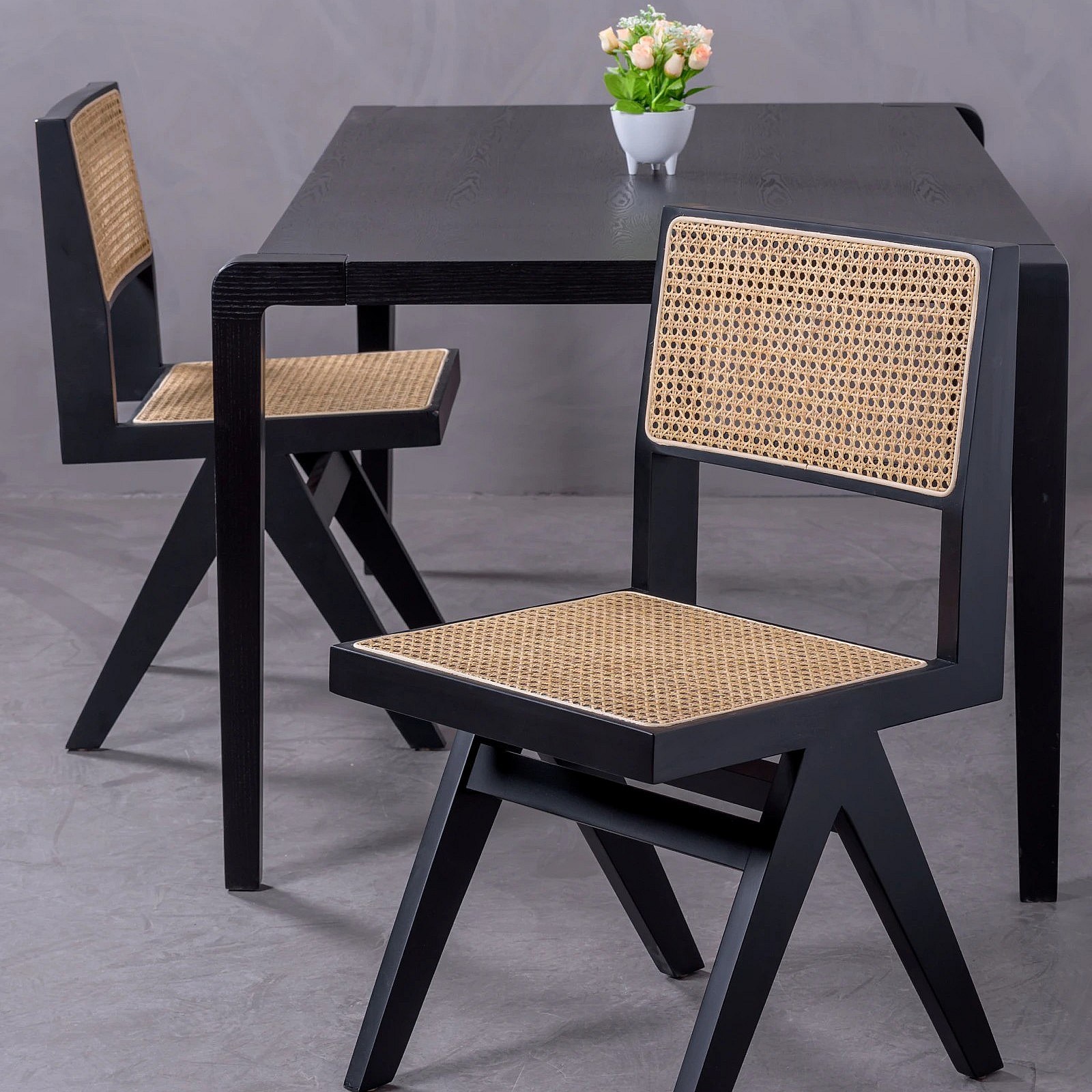 Chaise classique en rotin naturel et bois de frêne - Compass - Noir
