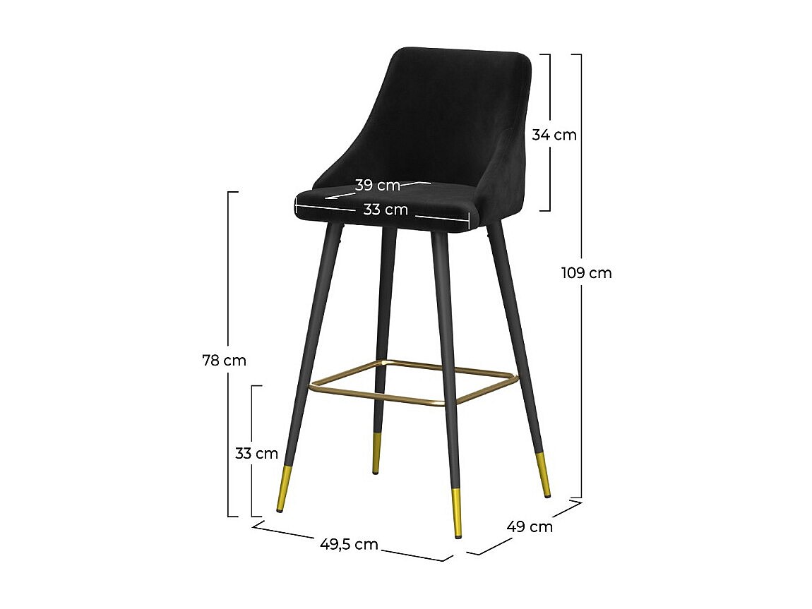 Lot de 2 chaises de bar 77.5 cm en velours noir - Aristote