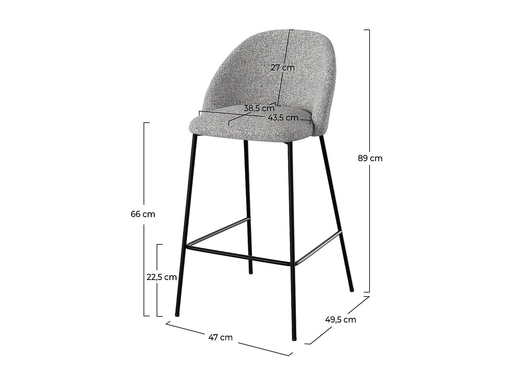 Lot de 2 chaises pour îlot central 66 cm en tissu chiné gris clair - Karl
