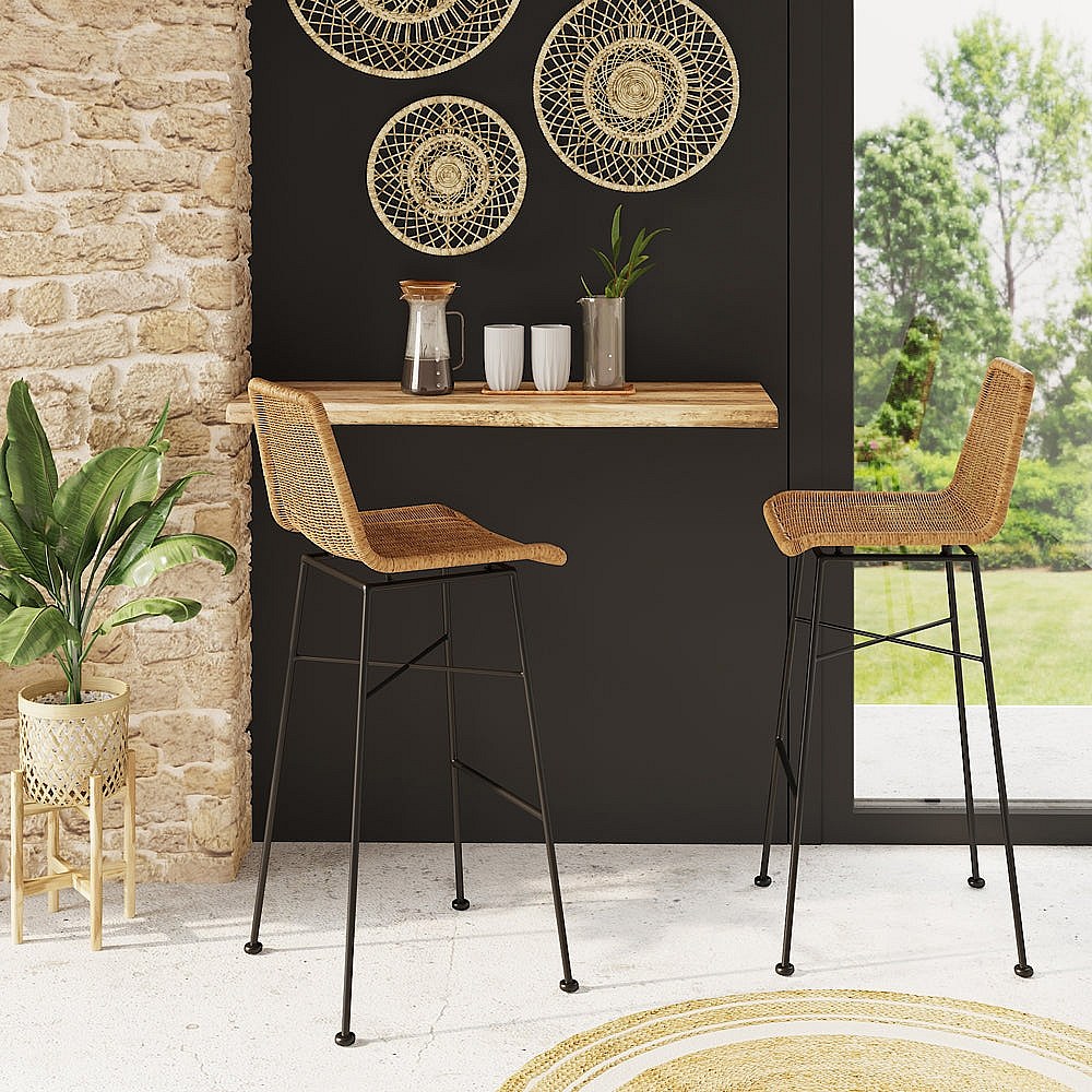 Lot de 2 chaises de bar 76 cm en résine tressée marron - Mandya