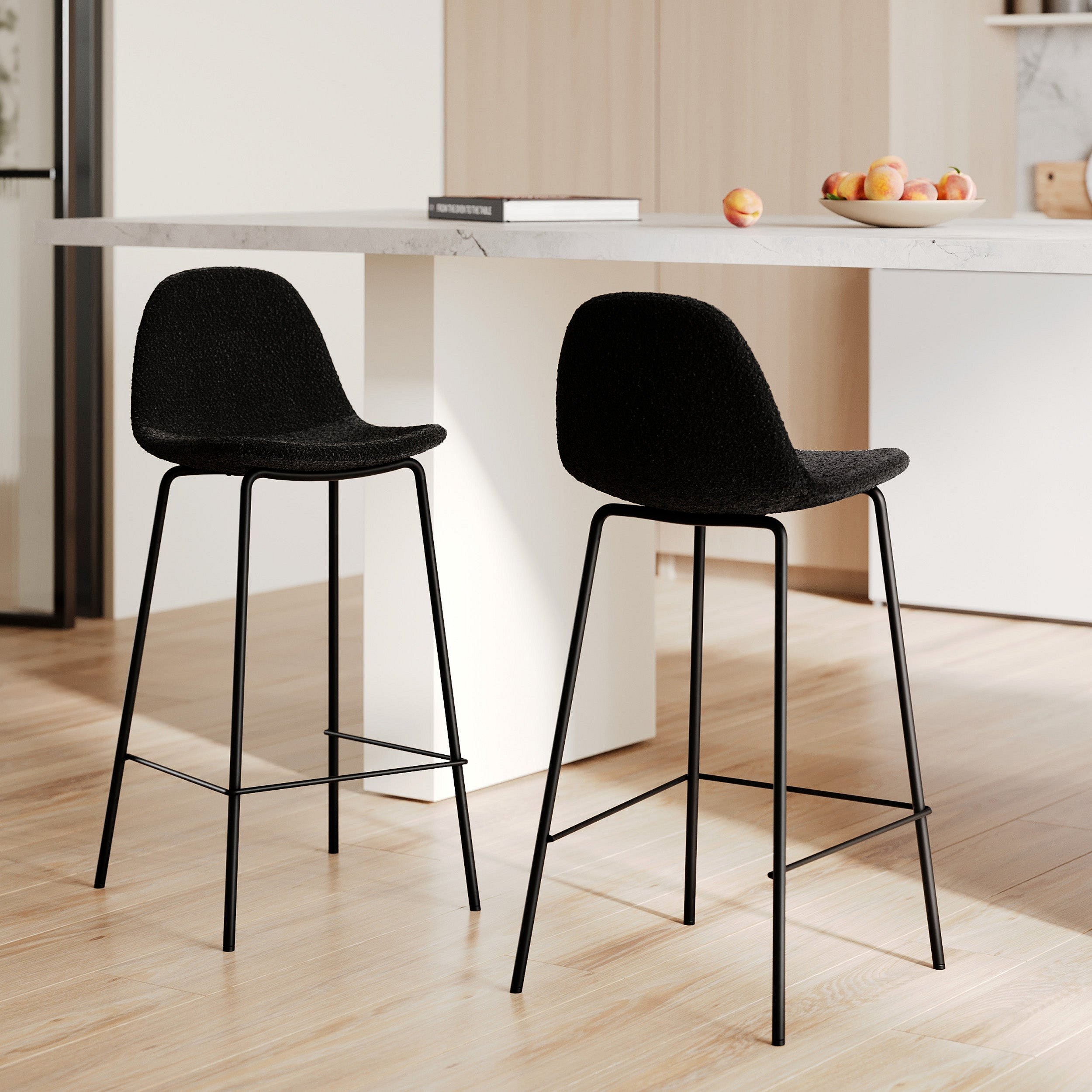 Lot de 2 chaises pour îlot central en tissu bouclé noir 63,5 cm - Iris