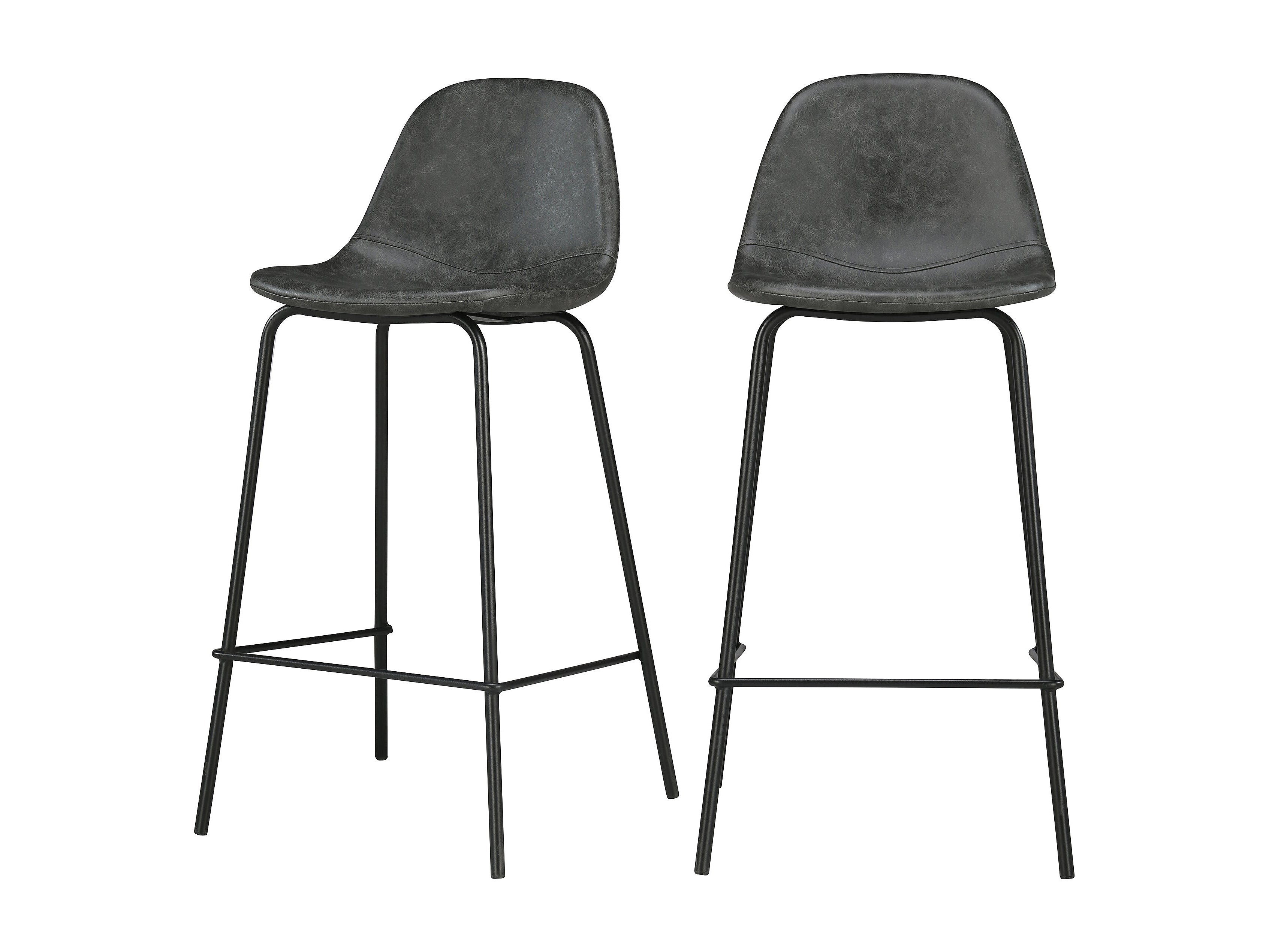 Lot de 2 chaises de bar grises/noires en cuir synthétique 75.5 cm - Texas