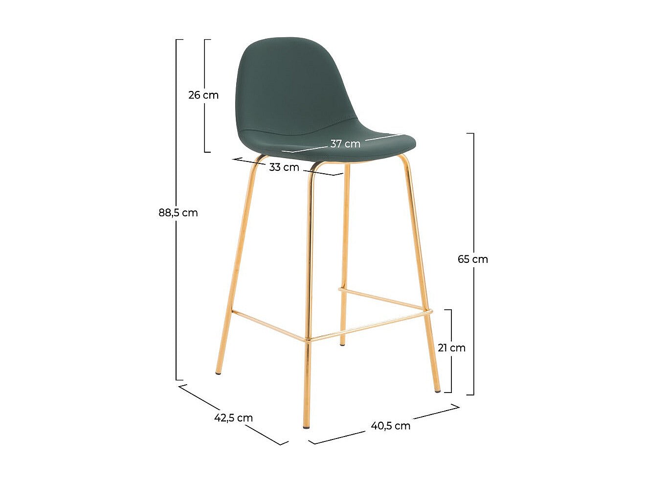 Lot de 2 chaises pour îlot central 65 cm en cuir synthétique vert - Henrik