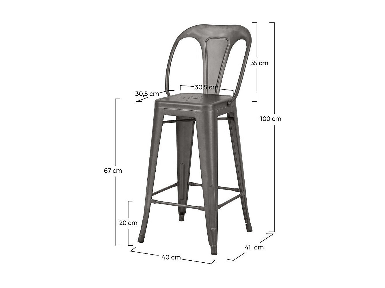 Lot de 2 chaises pour îlot central 67 cm en métal gris acier - Indus