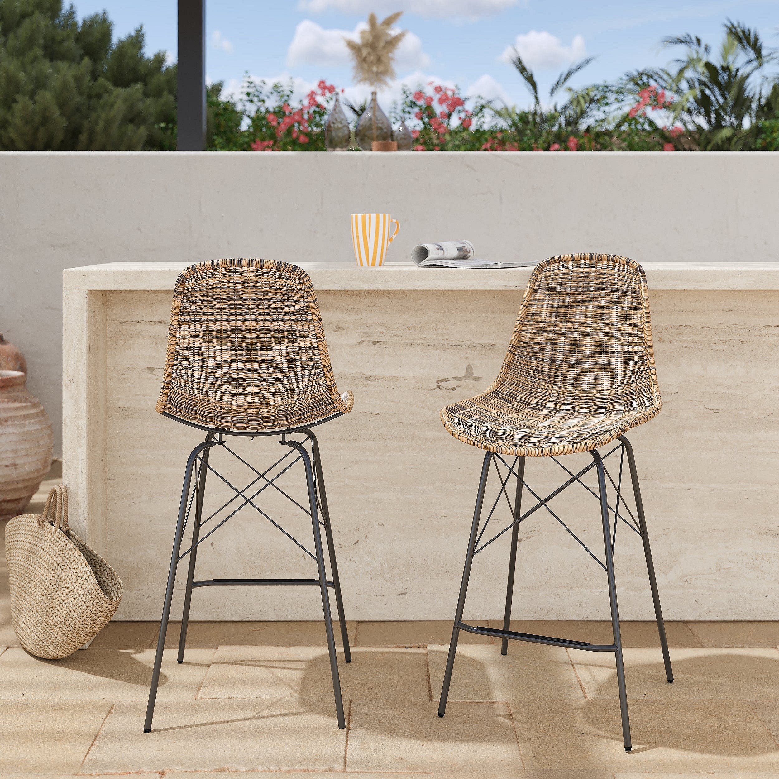 Lot de 2 chaises de bar 63 cm en résine tressé marron - Tiptur