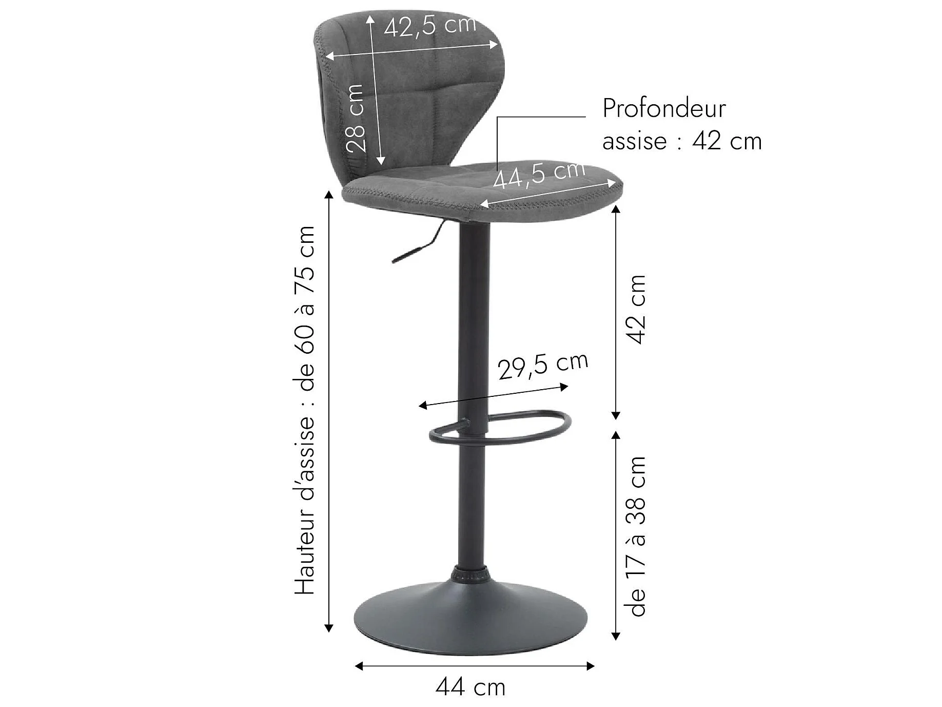 URBAN MEUBLE Lot de 2 tabourets de bar pivotants en PU noir de style industriel surpiqûres blancs 67Hcm