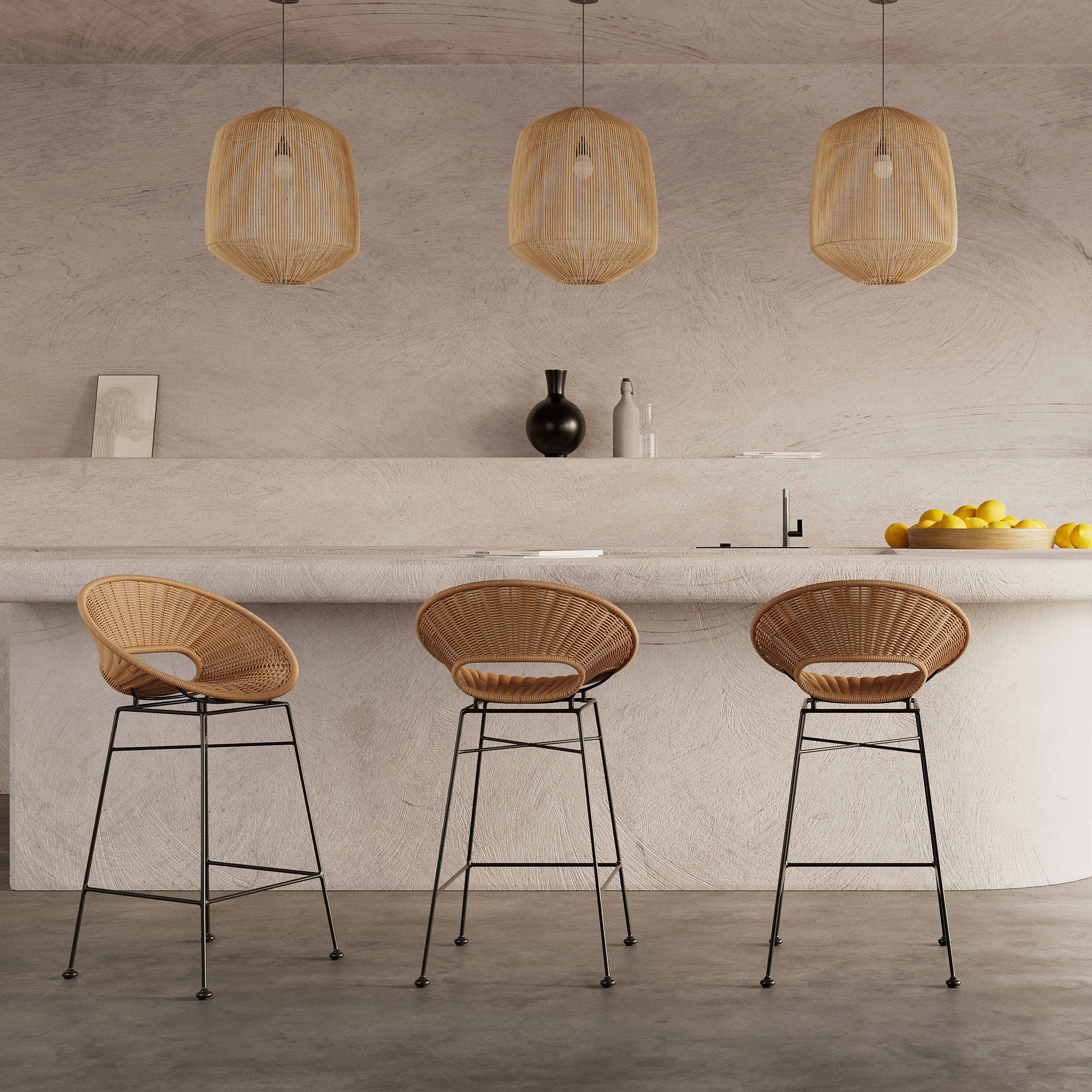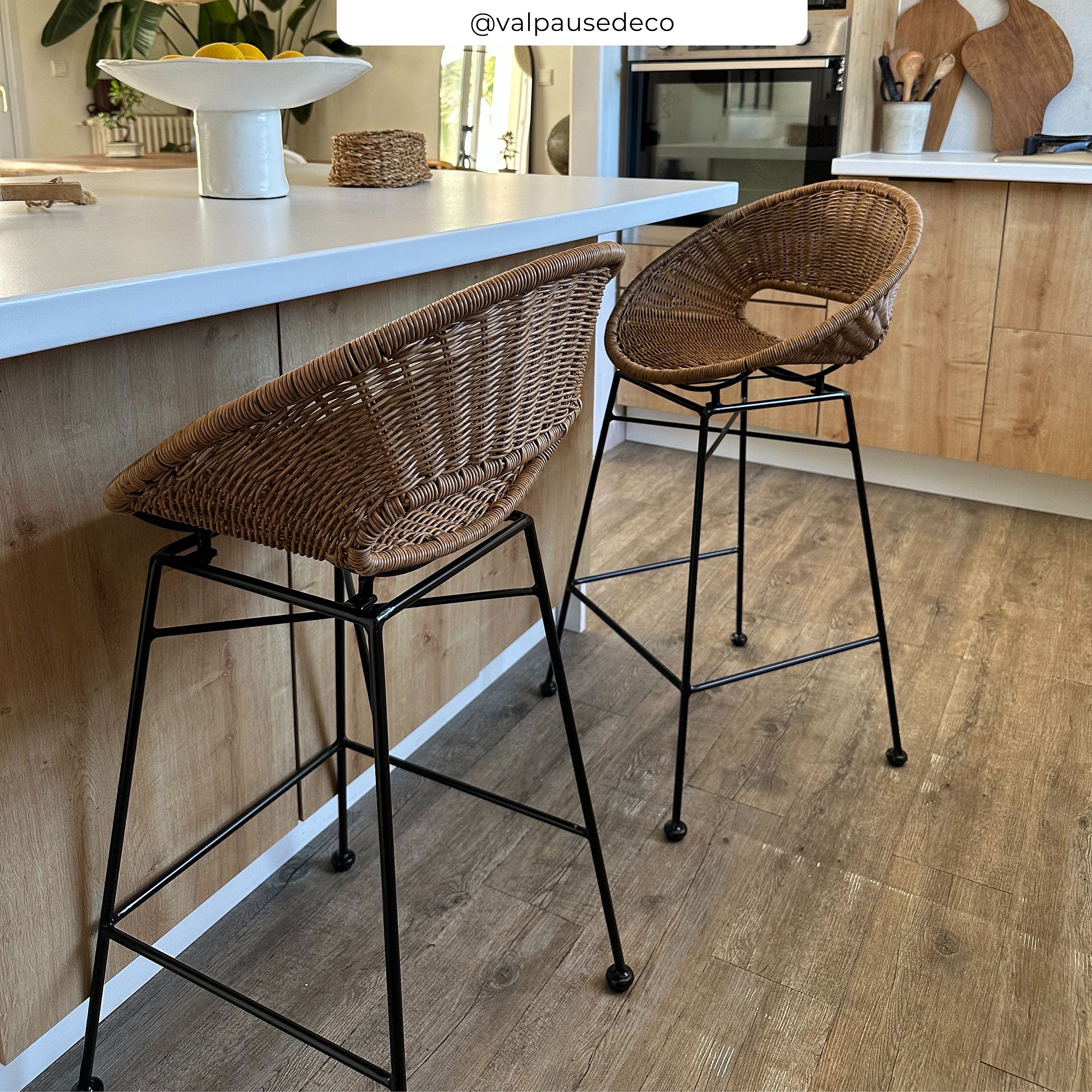 Lot de 2 tabourets pour îlot central 65 cm en résine tressée - Rava