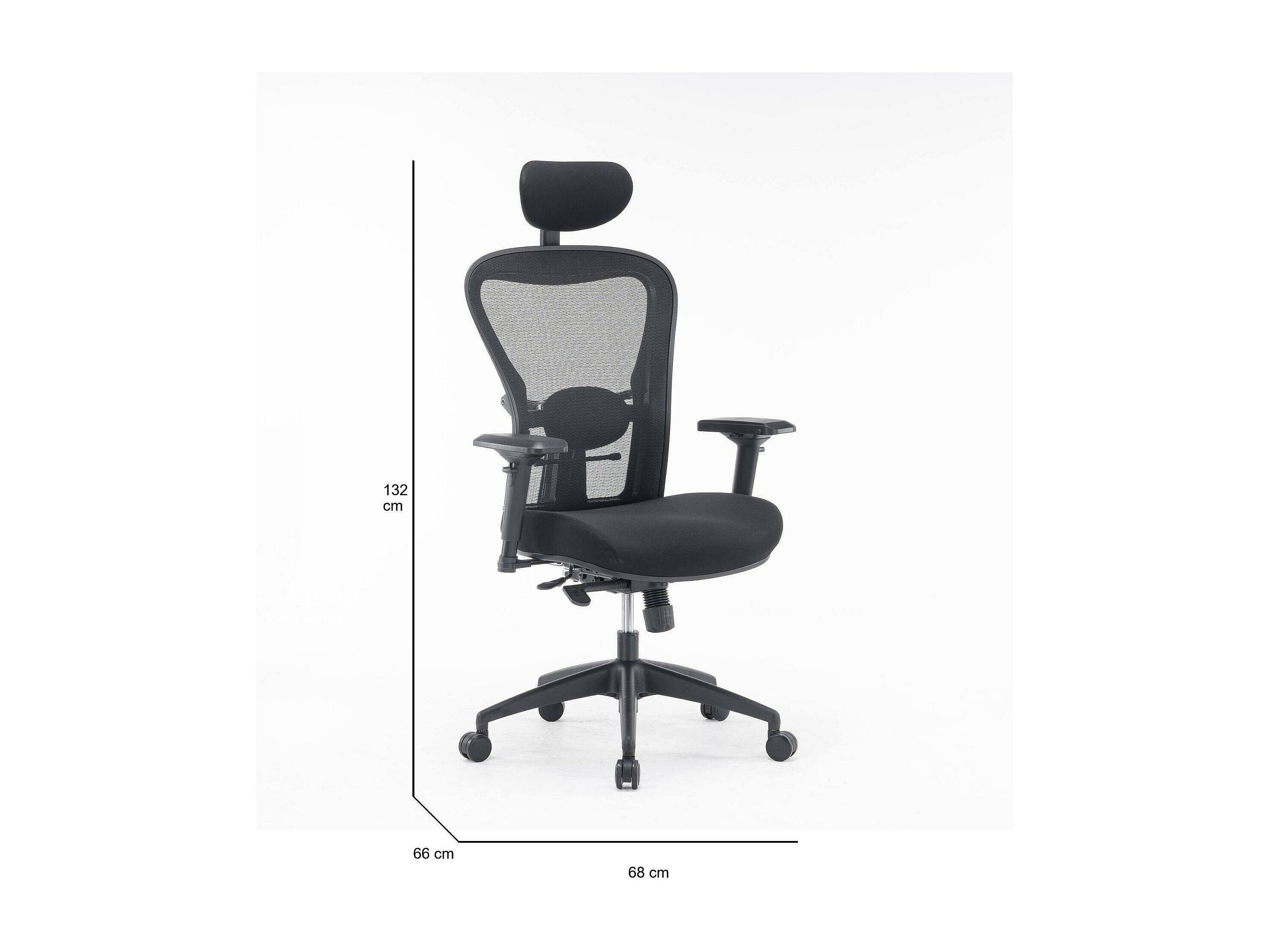 Chaise de bureau Auckland, Chaise de direction en maille avec accoudoirs, Siège de bureau ergonomique, 66x68h120/132 cm, Noir