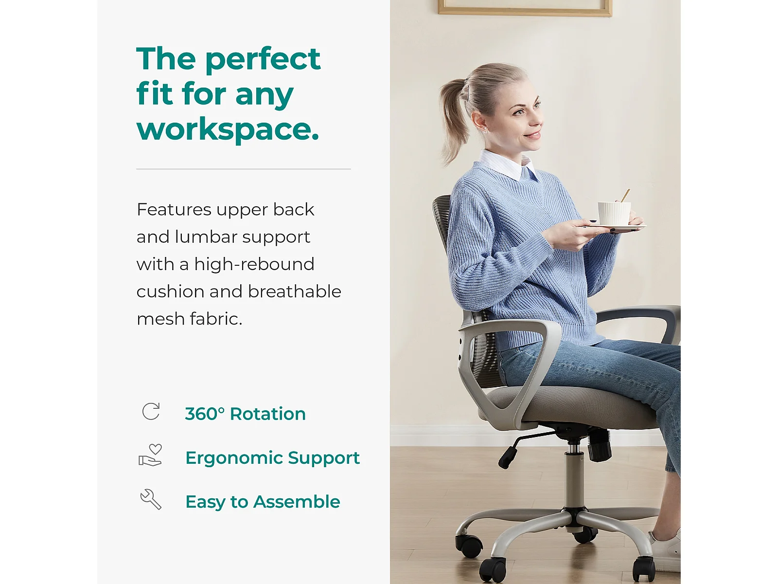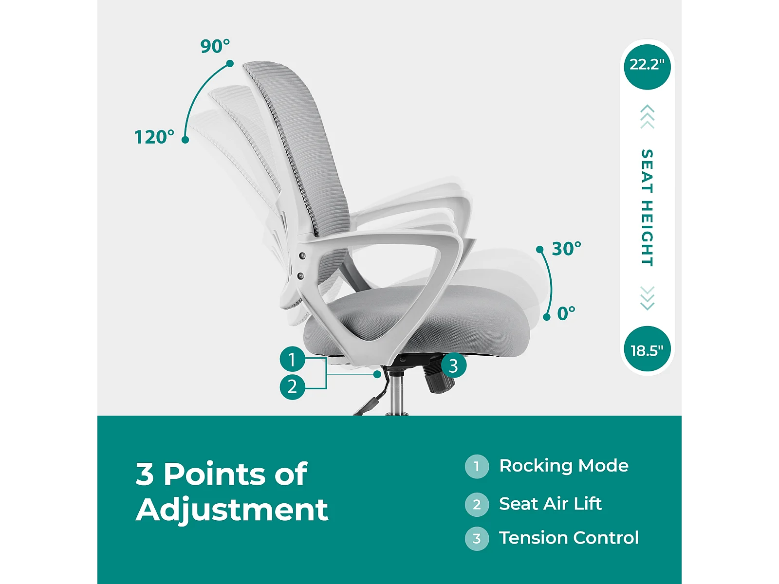Chaise de bureau pivotante avec coussin de soutien lombaire et accoudoirs rembourrés, repose-pieds rétractable ergonomique, gris