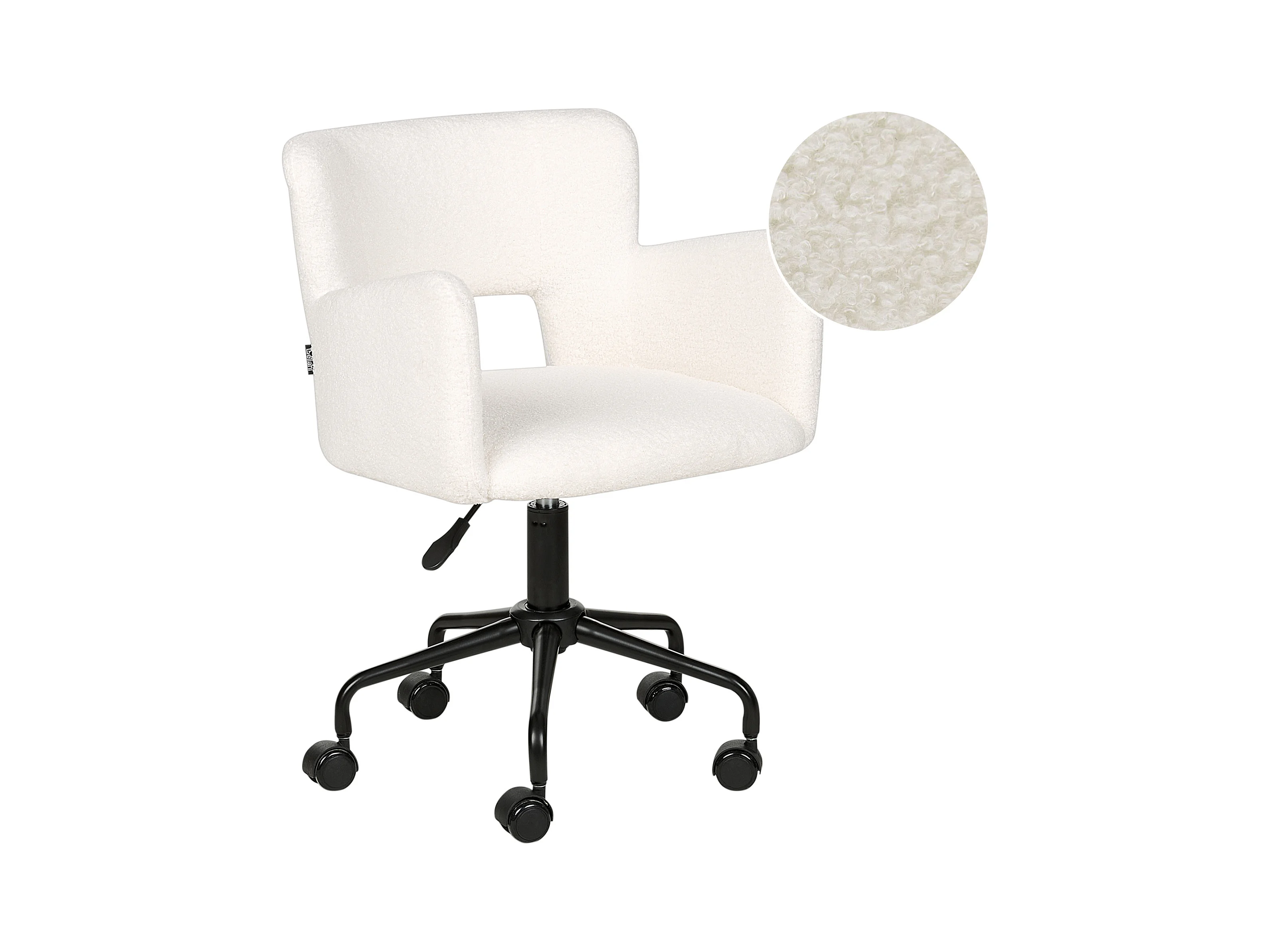 Chaise de bureau pivotante et réglable en tissu bouclé blanc - Aurore