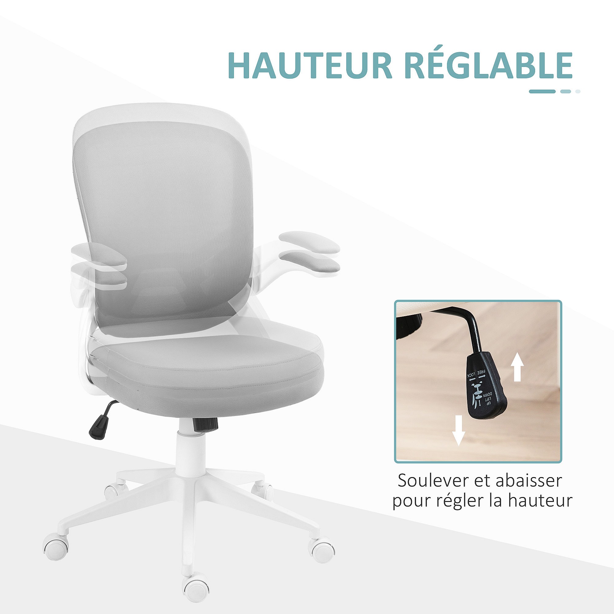 Chaise de bureau design ergonomique réglable accoudoirs relevables maille tissu gris
